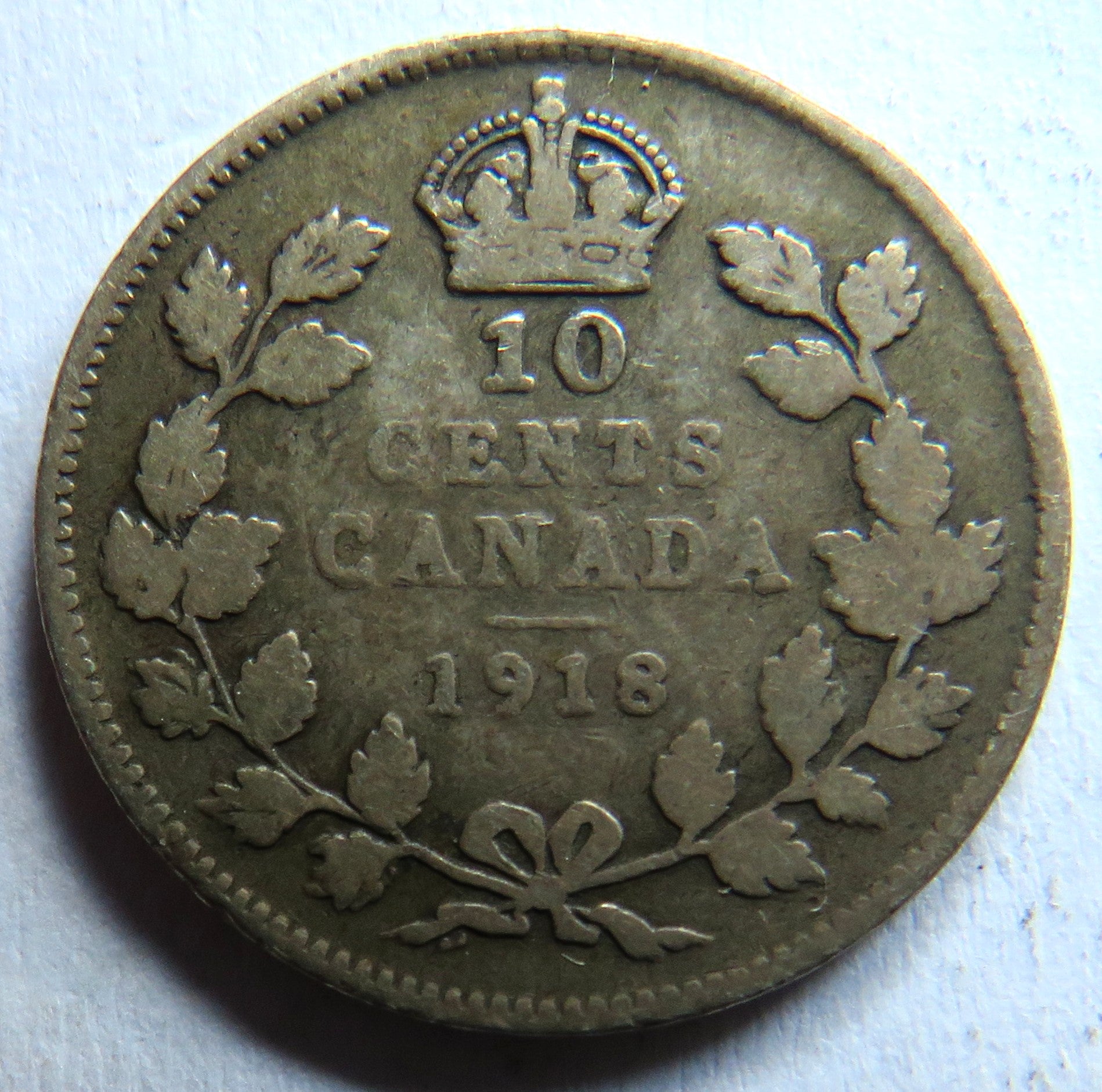 For Sale - 1918 King George V Canada Silver 10 Cents Coin