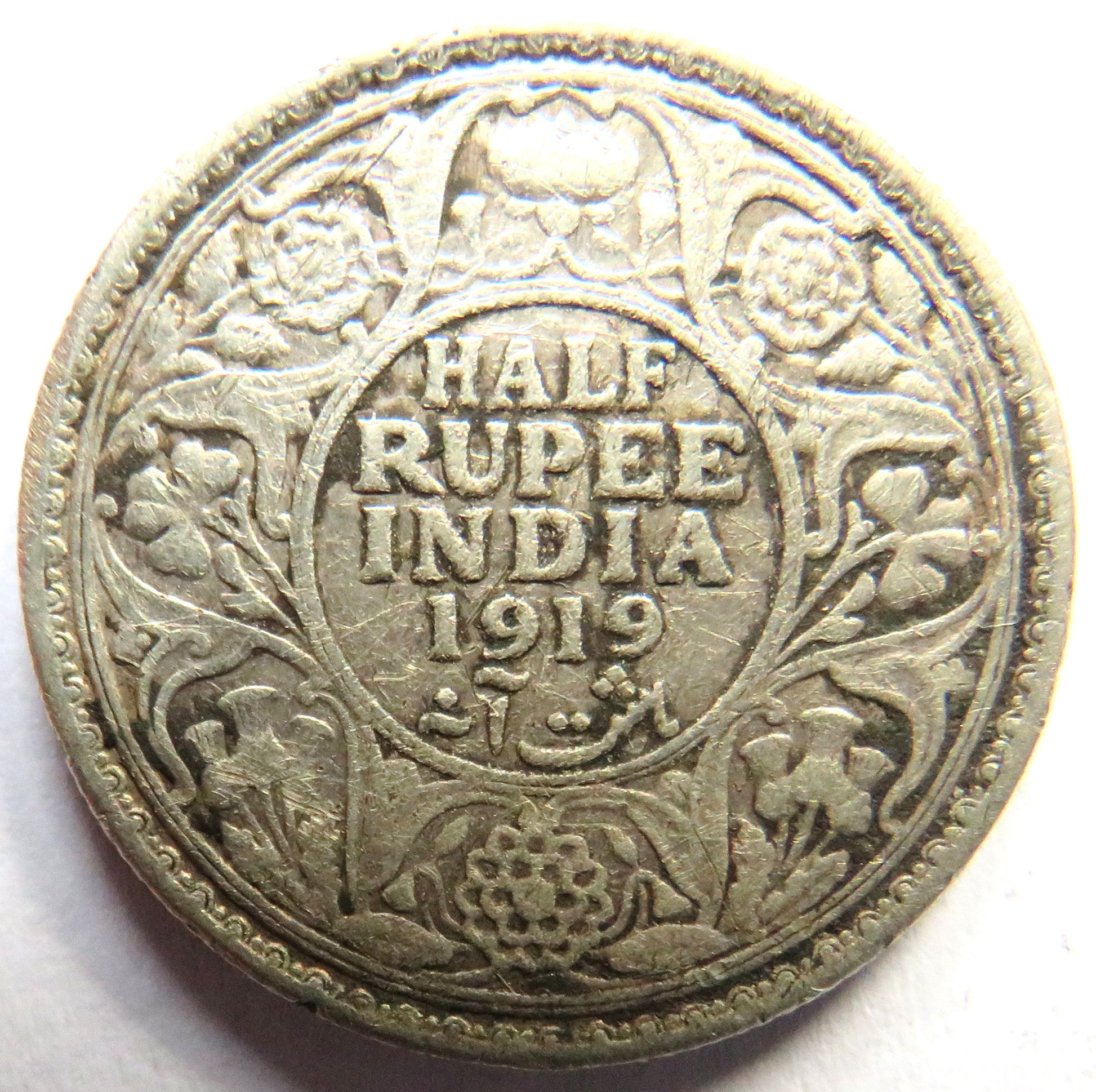For Sale - 1919 King George V India Silver 1/2 Half Rupee Coin