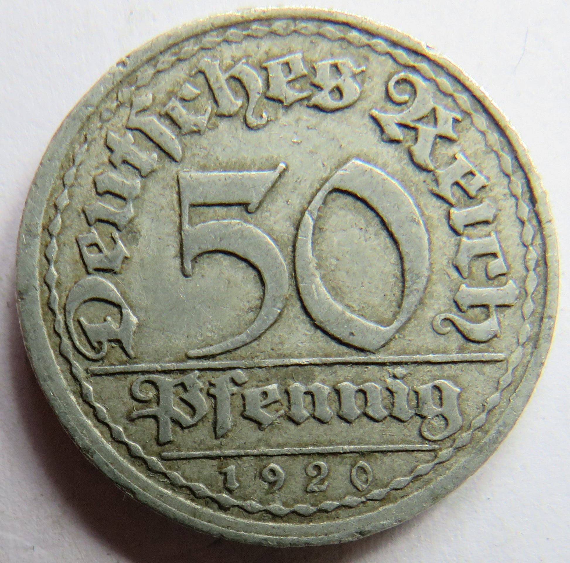 1920-A Germany Weimar Republic 50 Pfennig Coin