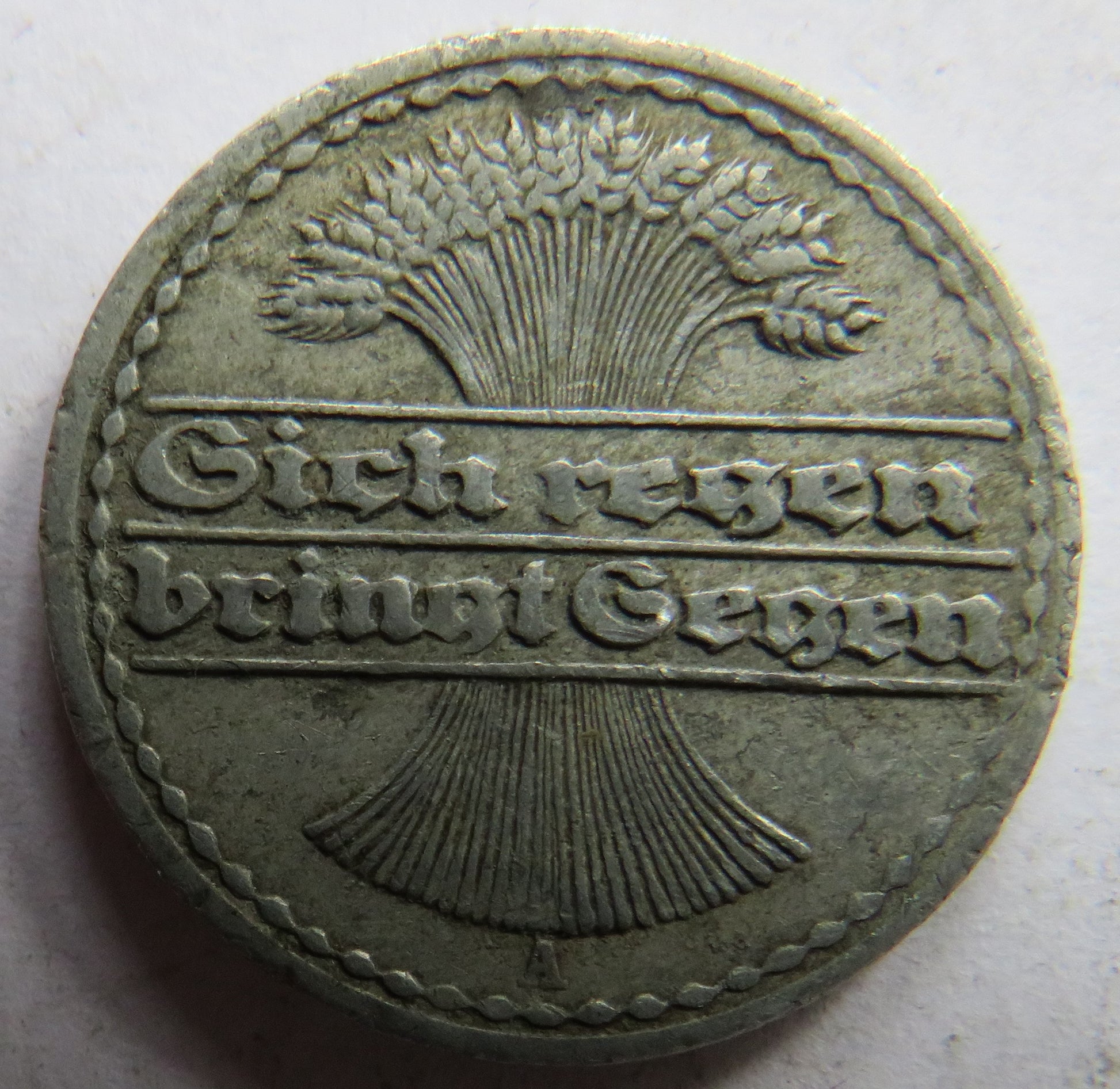 For Sale - 1920-A Germany Weimar Republic 50 Pfennig Coin