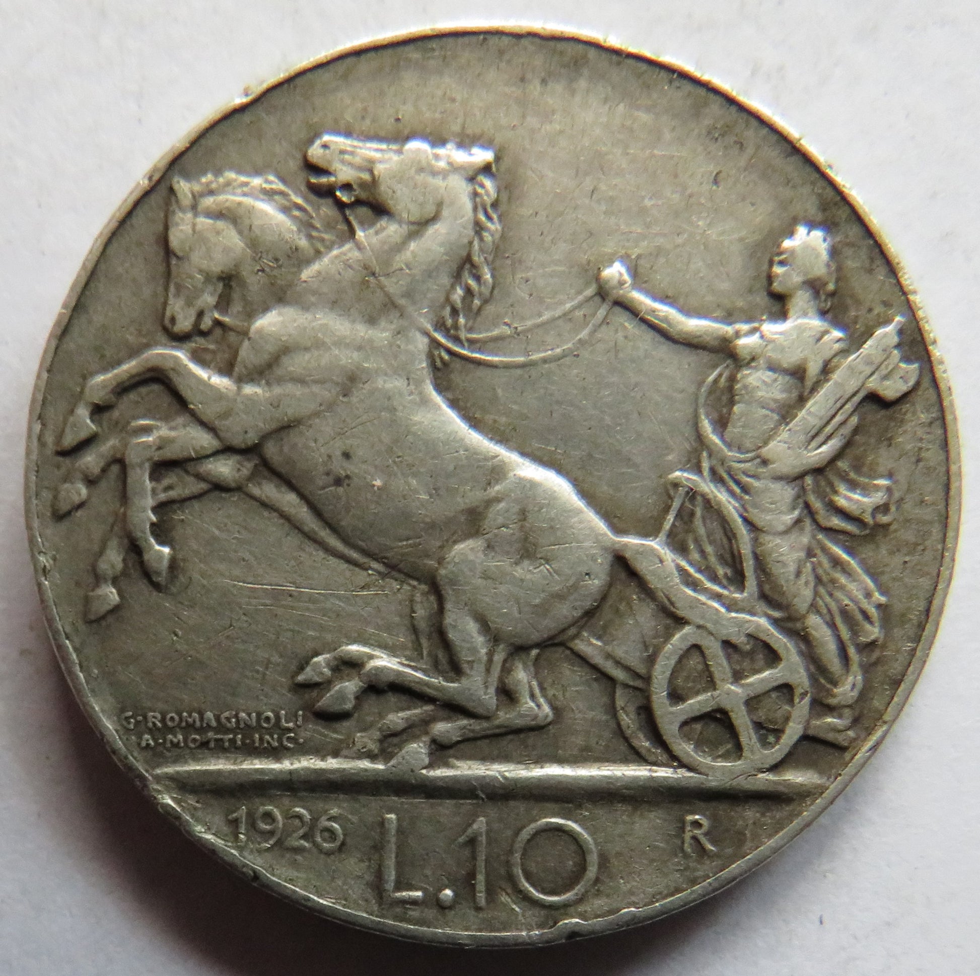 1926 Italy Silver 10 Lire Coin Scarce Date