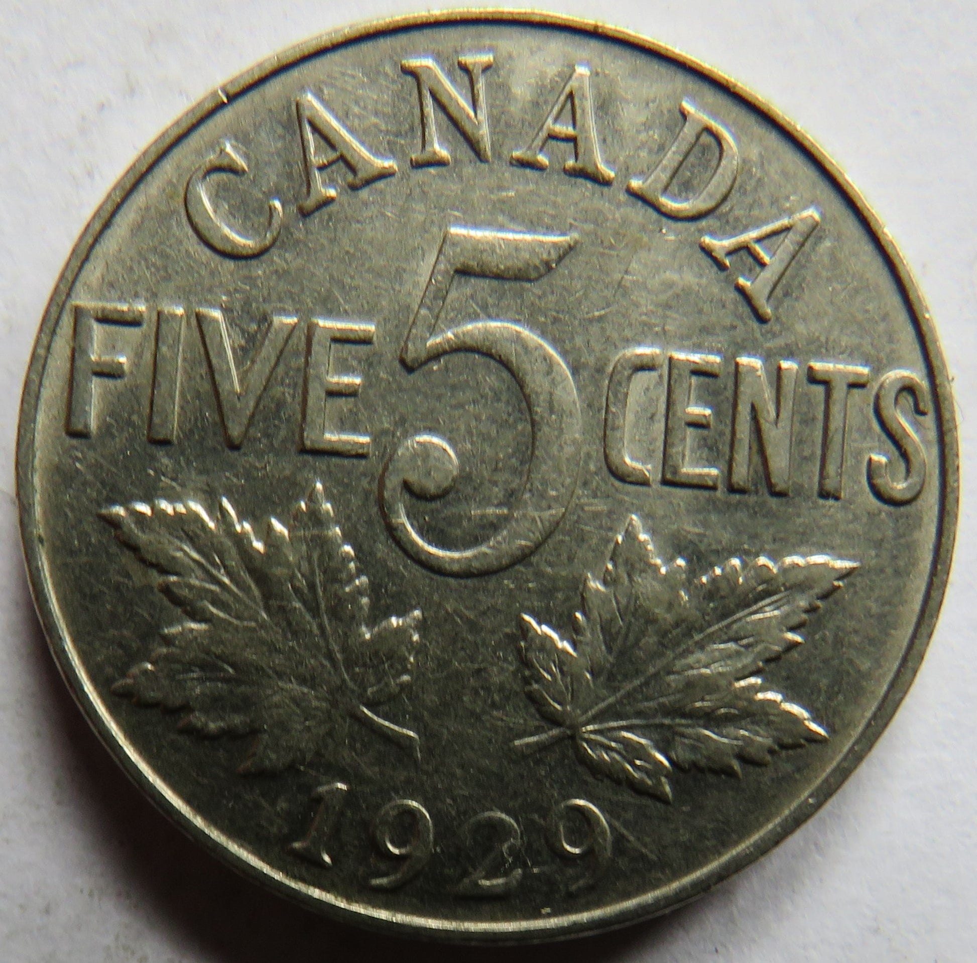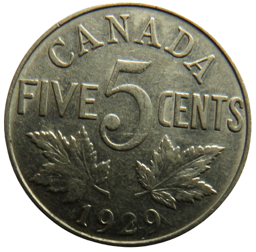 1929 King George V Canada 5 Cents Coin