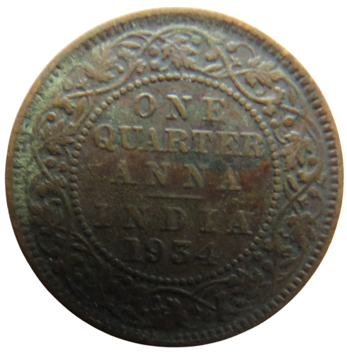 1934 King George V India 1/4 Quarter Anna Coin