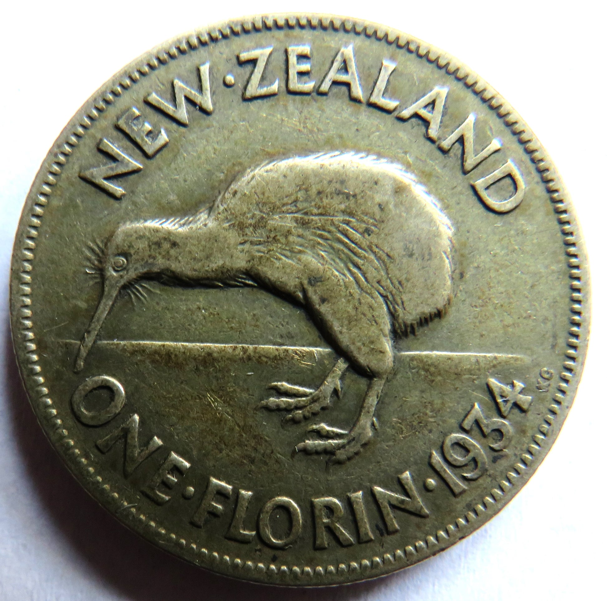 For Sale - 1934 King George V New Zealand Silver One Florin Coin