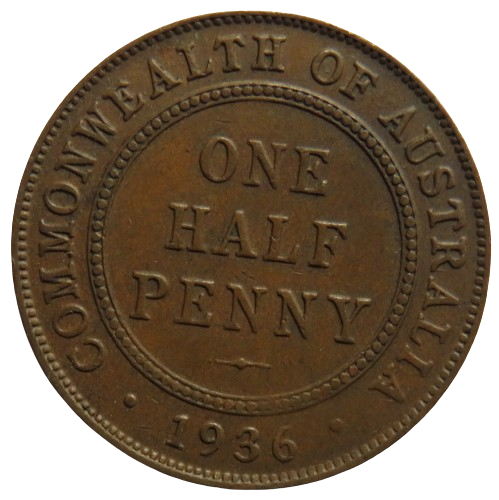For Sale - 1936 King George V Australia Halfpenny Coin