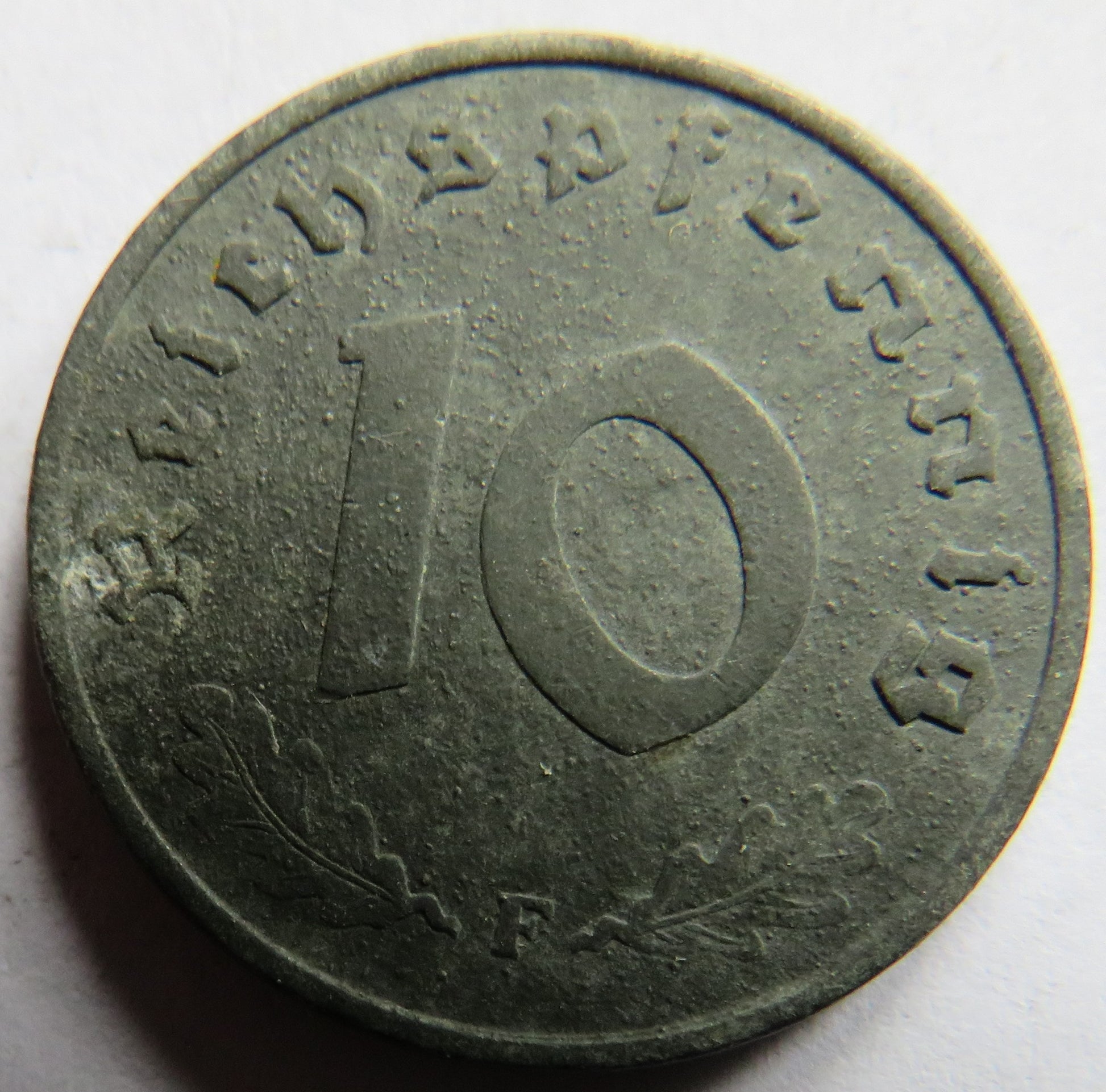 1942-F Germany - Third Reich 10 Reichspfennig Coin