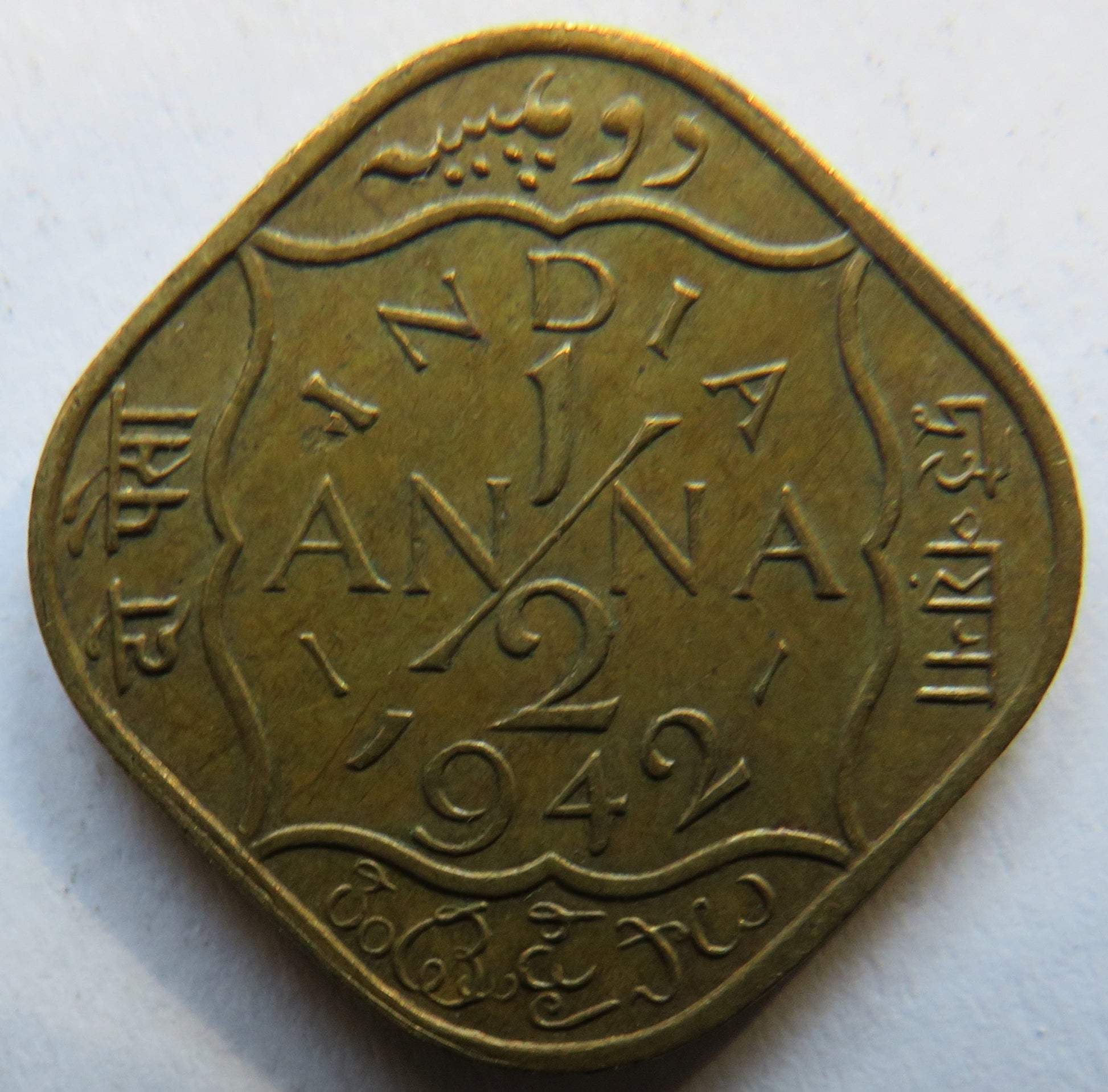 For Sale - 1942 King George VI India 1/2 Anna Coin