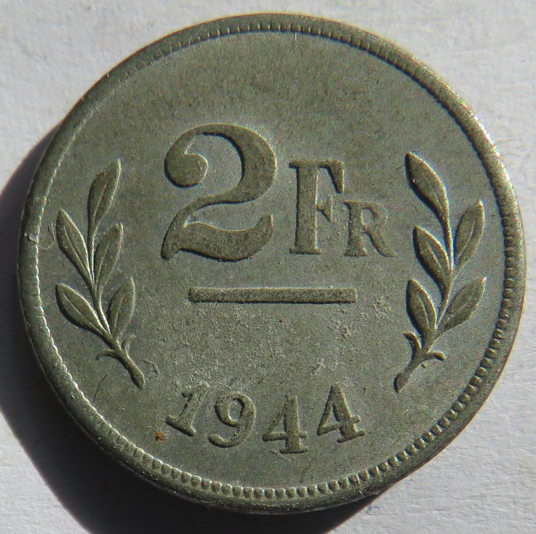1944 Belgium 2 Francs Coin