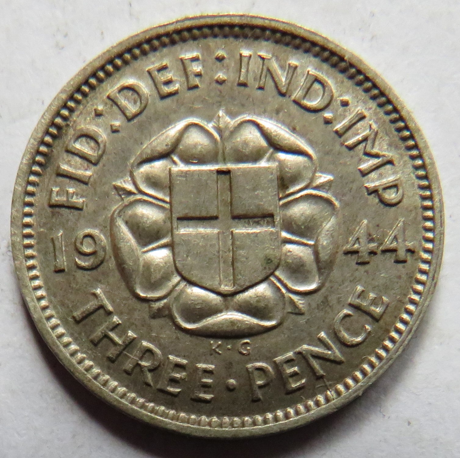 For Sale - 1944 King George VI Silver Threepence Coin In Higher Grade Scarce Date