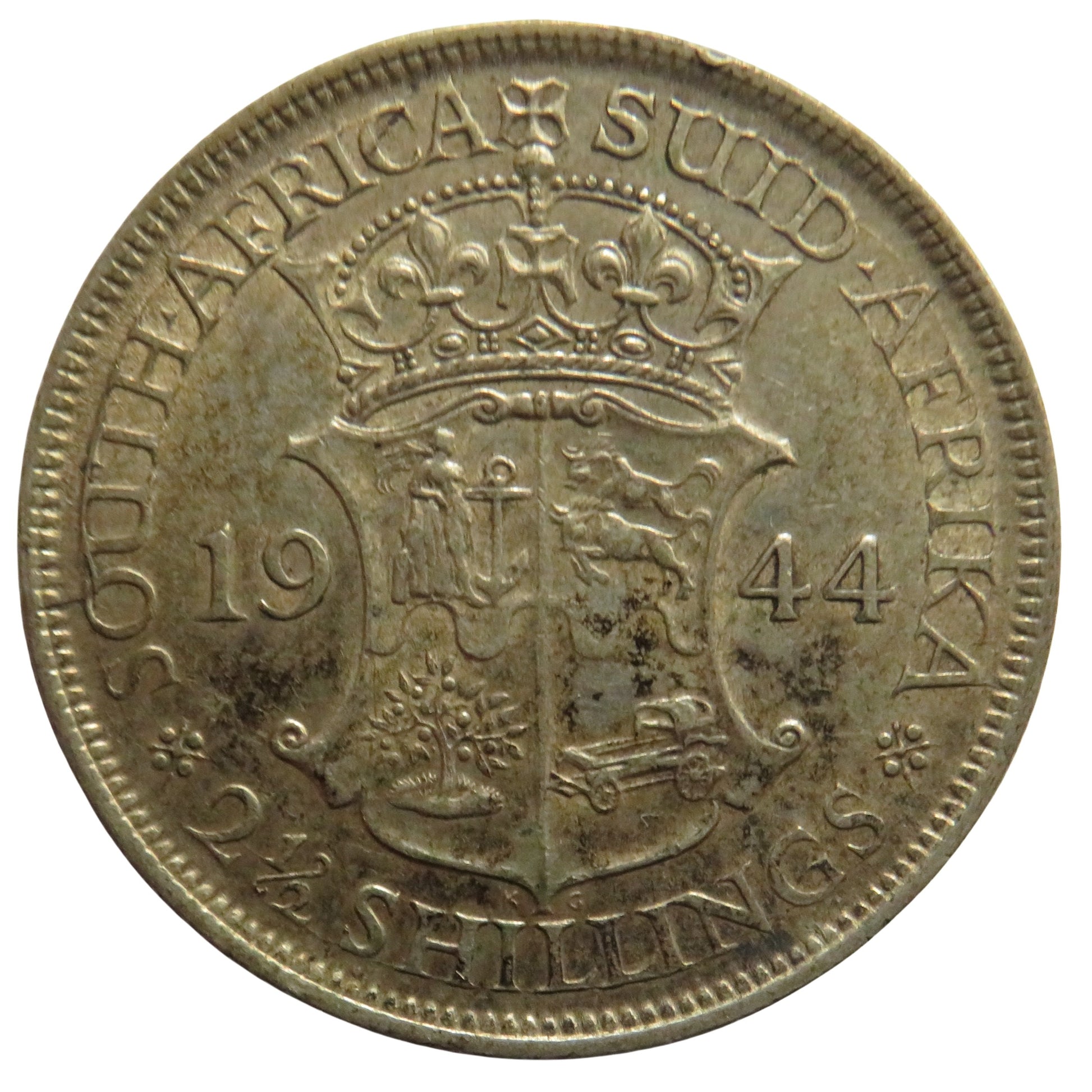 1944 King George VI South Africa Silver 2 & 1/2 Shillings Coin