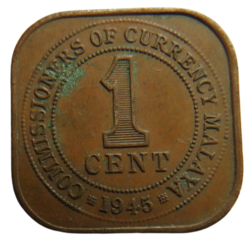 1945 King George VI Commissioners of Currency Malaya One Cent Coin