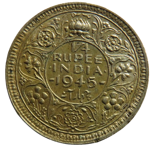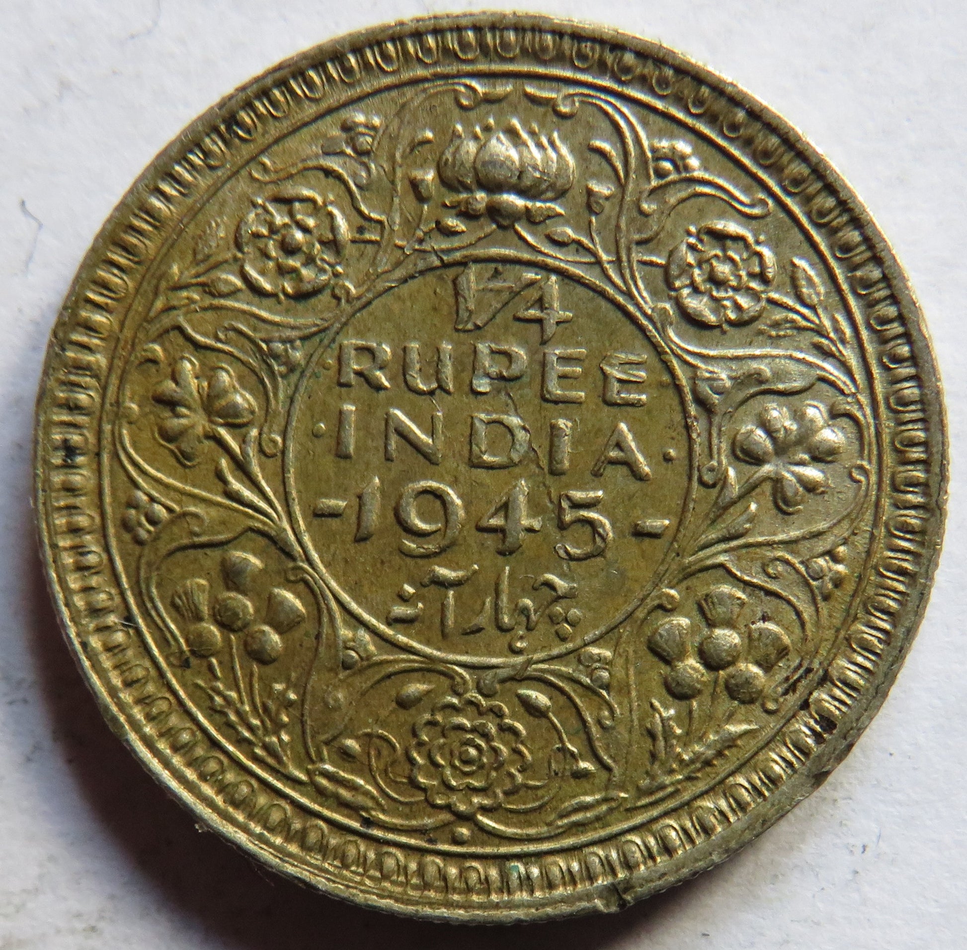 For Sale - 1945 King George VI India Silver 1/4 Rupee Coin