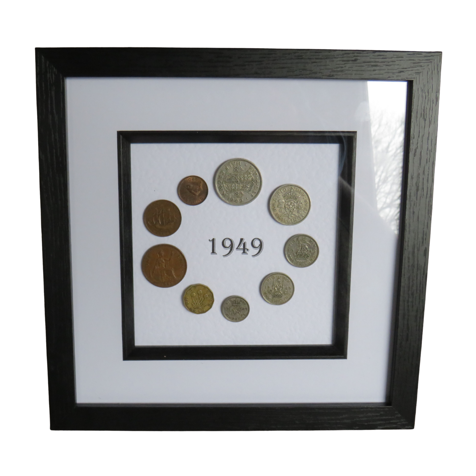 We have several framed sets available; you’ll receive coins in similar condition to those shown in the photos. Looking for something different from 1949? Explore our unmounted and mounted coin sets, plus a range of other unique gifts in our online store.
