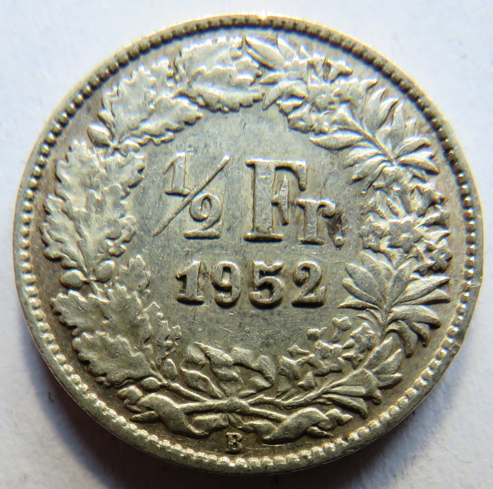 For Sale - 1952 Switzerland Silver 1/2 Franc Coin