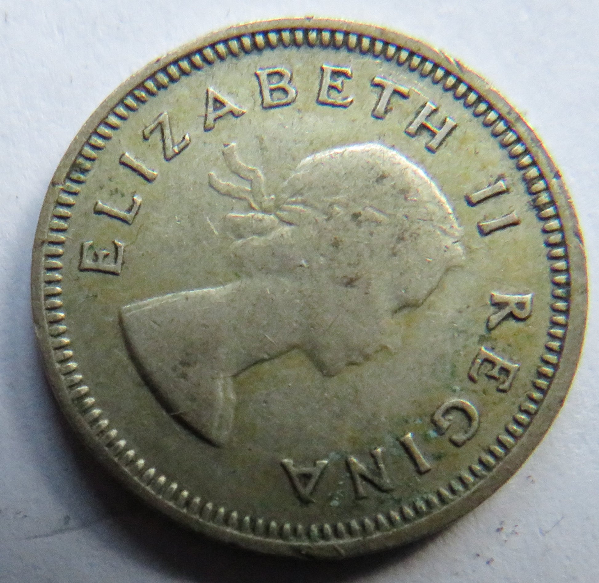1953 Queen Elizabeth II South Africa Silver Threepence Coin