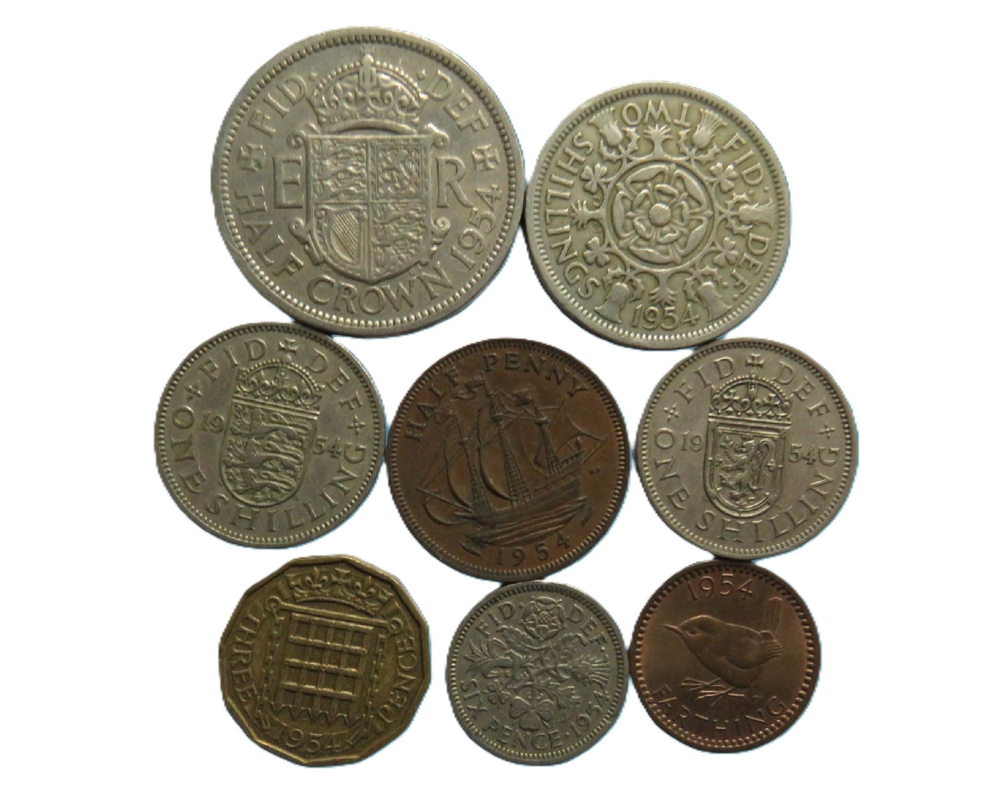 A set of genuine old British coins from the year 1954. These coins set make a thoughtful gift for birthdays, anniversaries, or anyone wishing to mark a special occasion with a unique and meaningful keepsake. It’s also perfect for expanding your own coin collection with original coins from a specific year.