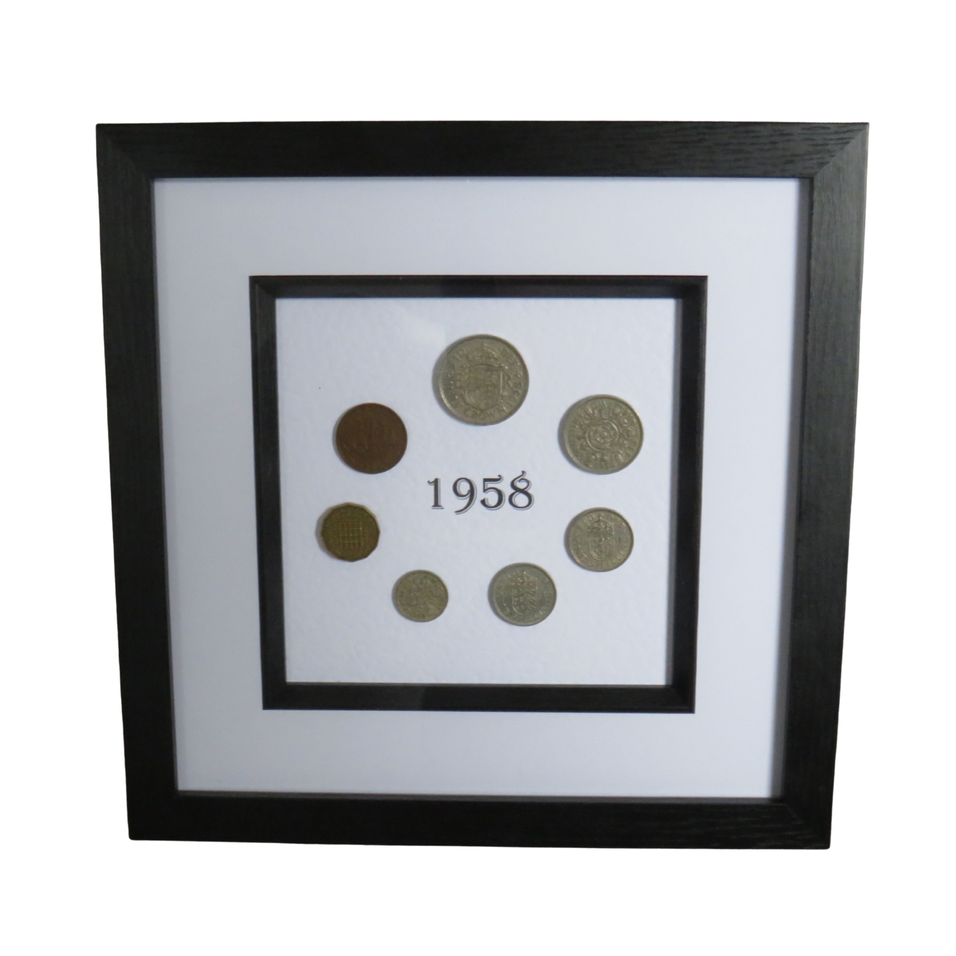 We have several framed sets available; you’ll receive coins in similar condition to those shown in the photos. Looking for something different from 1958? Explore our unmounted and mounted coin sets, plus a range of other unique gifts in our online store.