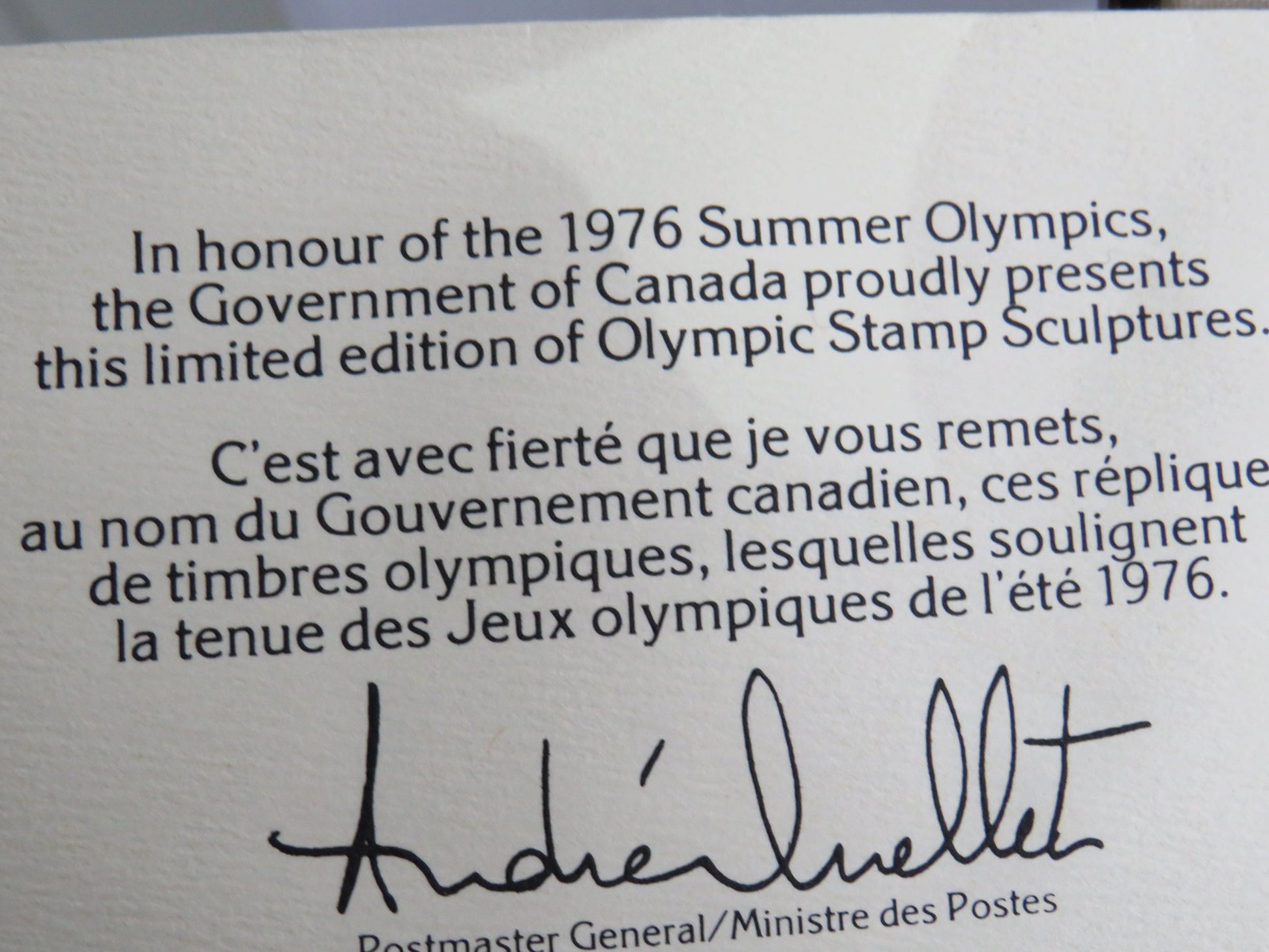For Sale - 1976 Canada Summer Olympics Limited Edition stamp Sculptures / Medals