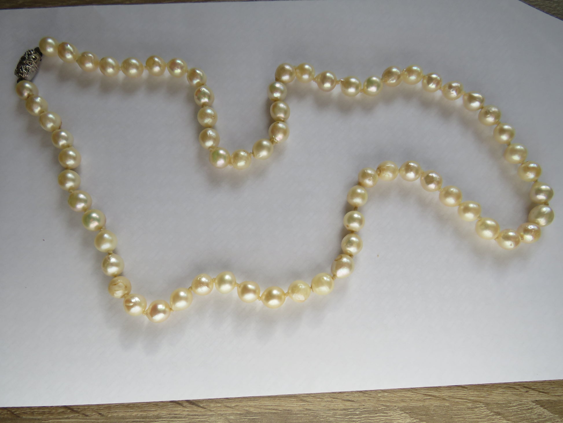 For Sale - A Good Length Ladies Pearl Necklace With Silver & Marcasite Clasp 63 cm