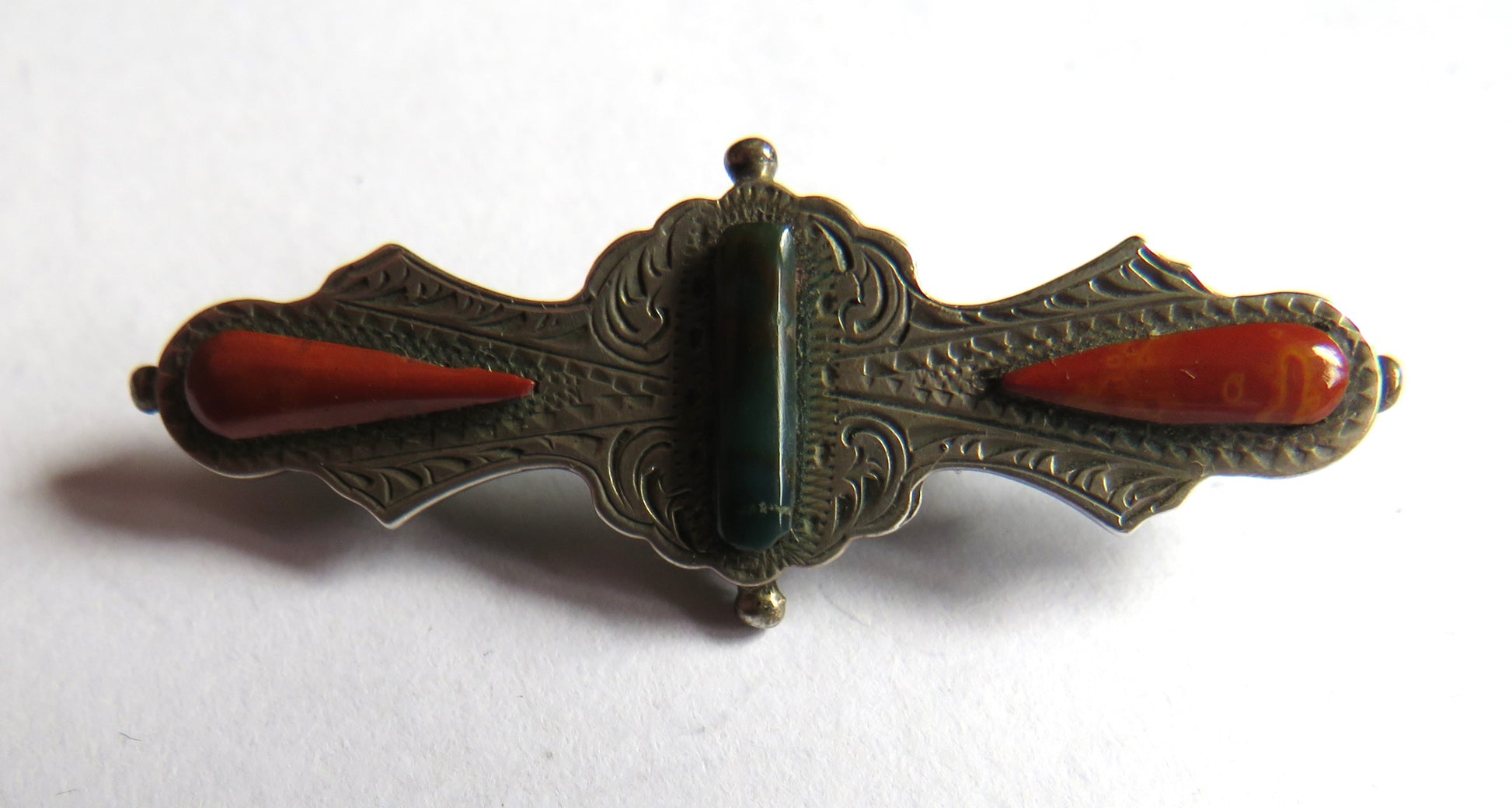 For Sale - Antique Scottish White Metal & Agate Brooch