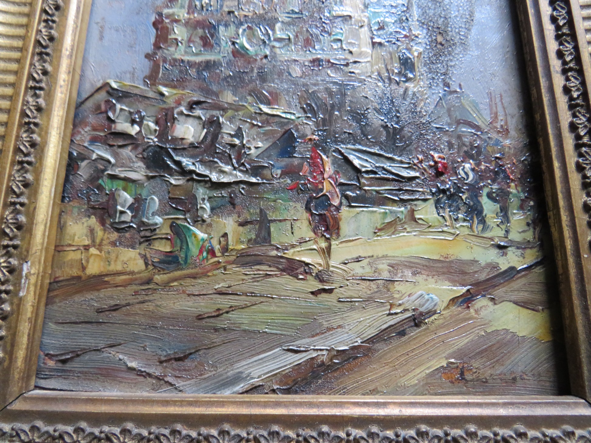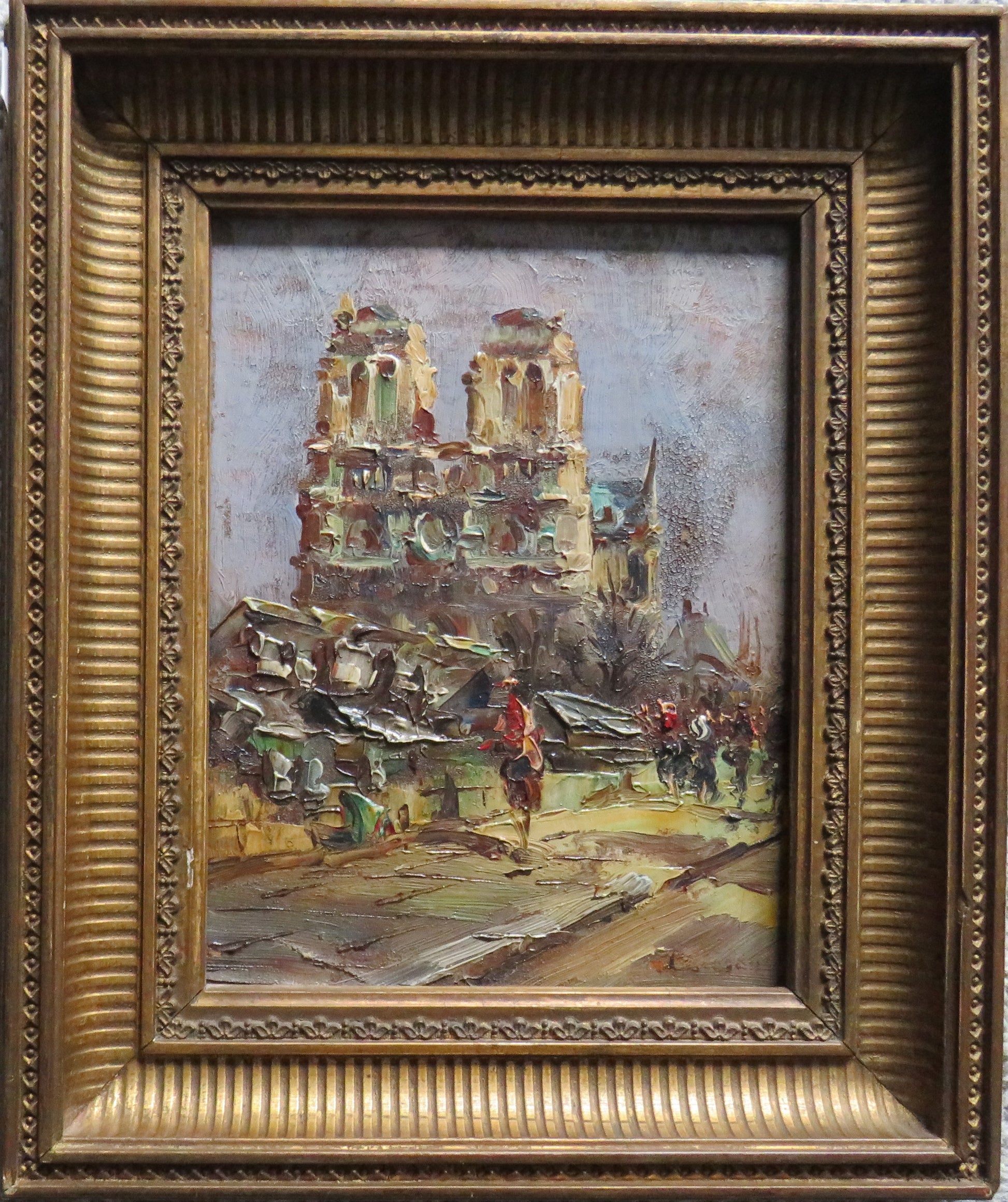 Antique Small Framed Oil Painting of Notra Dame Cathedral Paris
