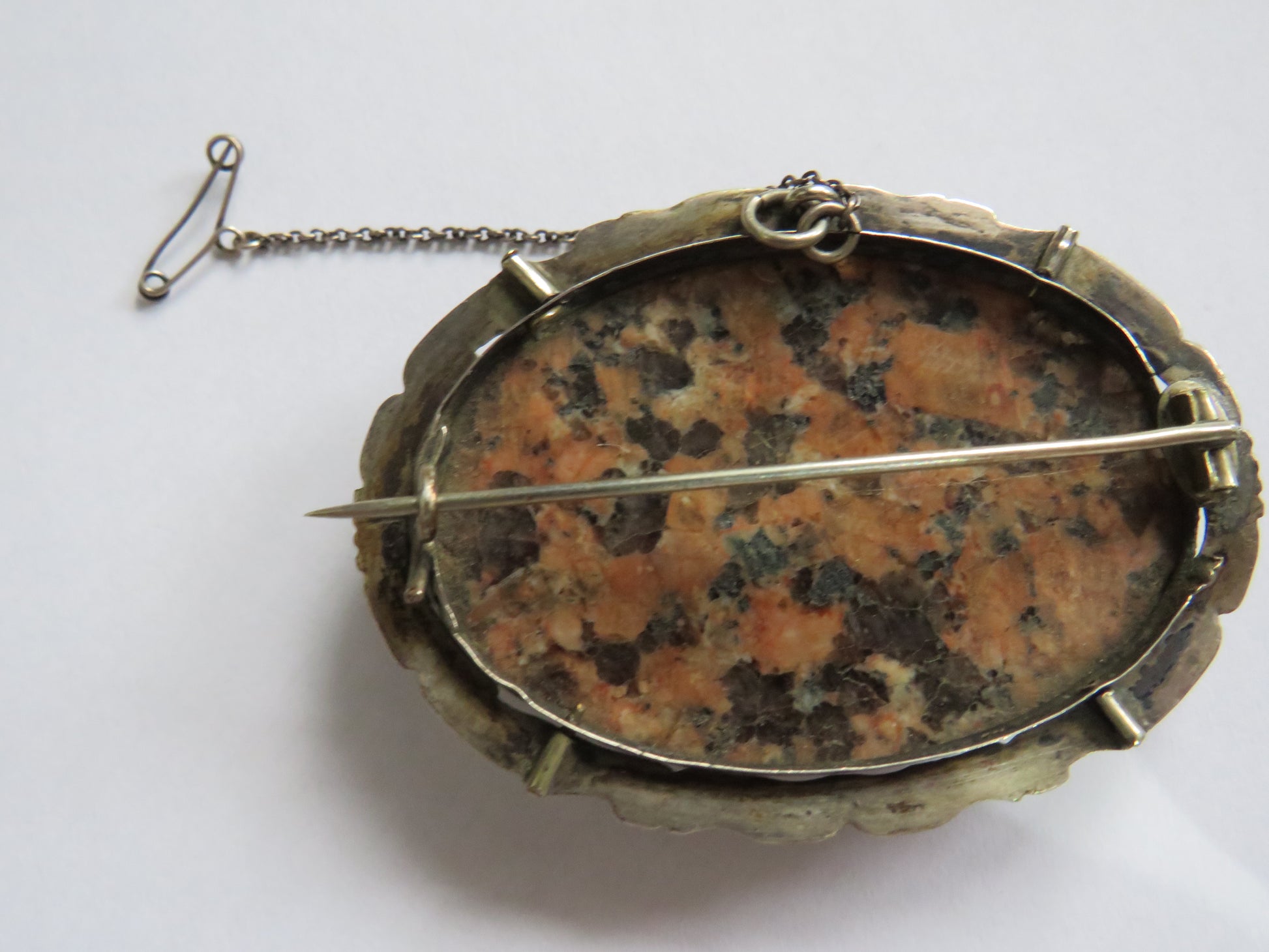 Antique Victorian White Metal & Granite Scottish Large Brooch