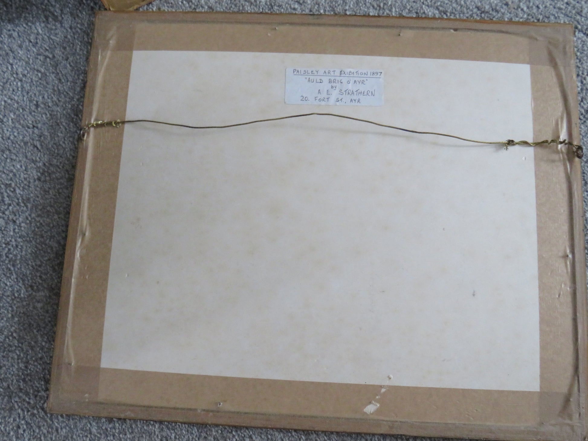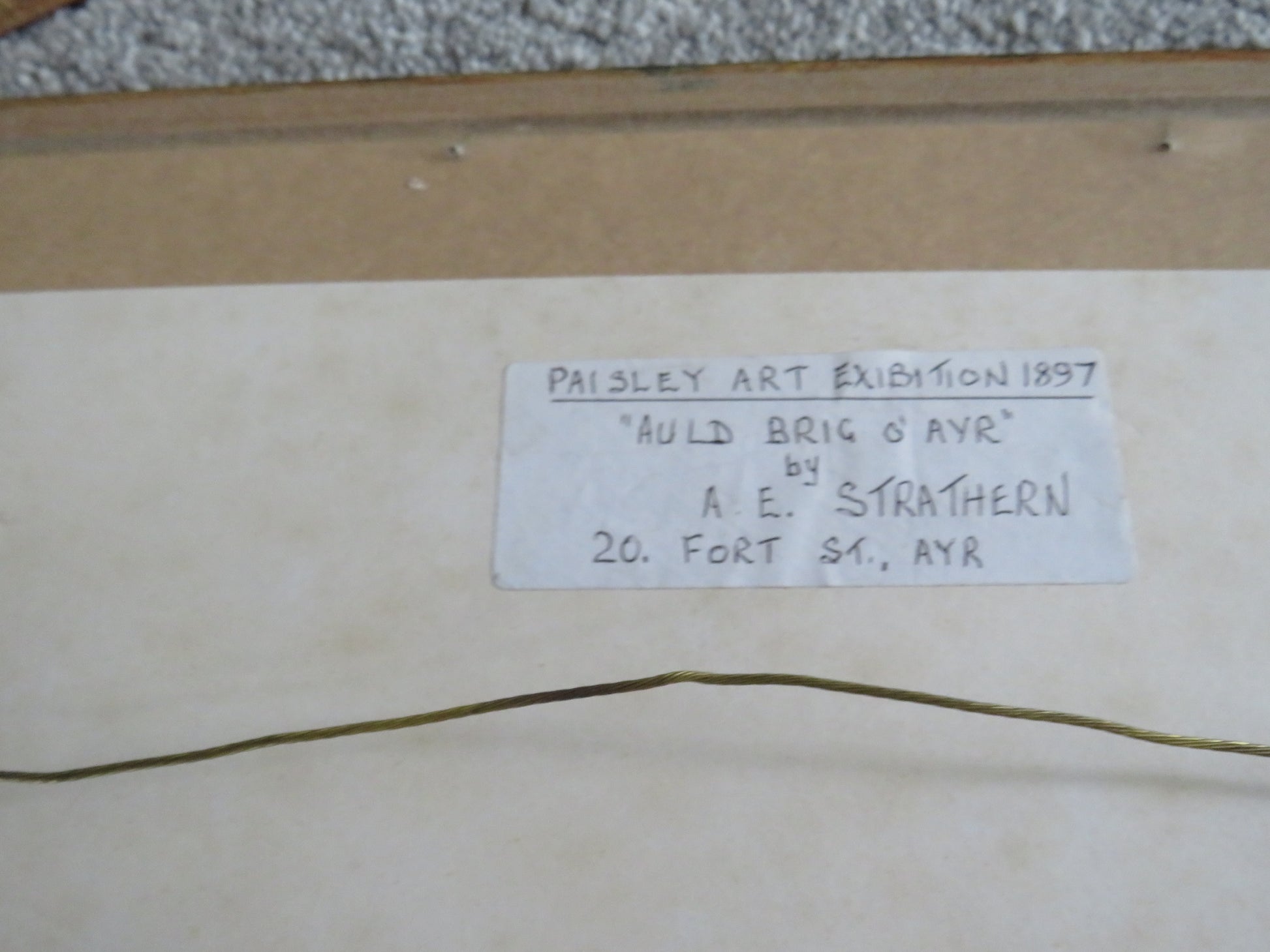 Antique Watercolour "Auld Brig O' Ayr" By A.E. Strathern Paisley Art Exhibition 1897
