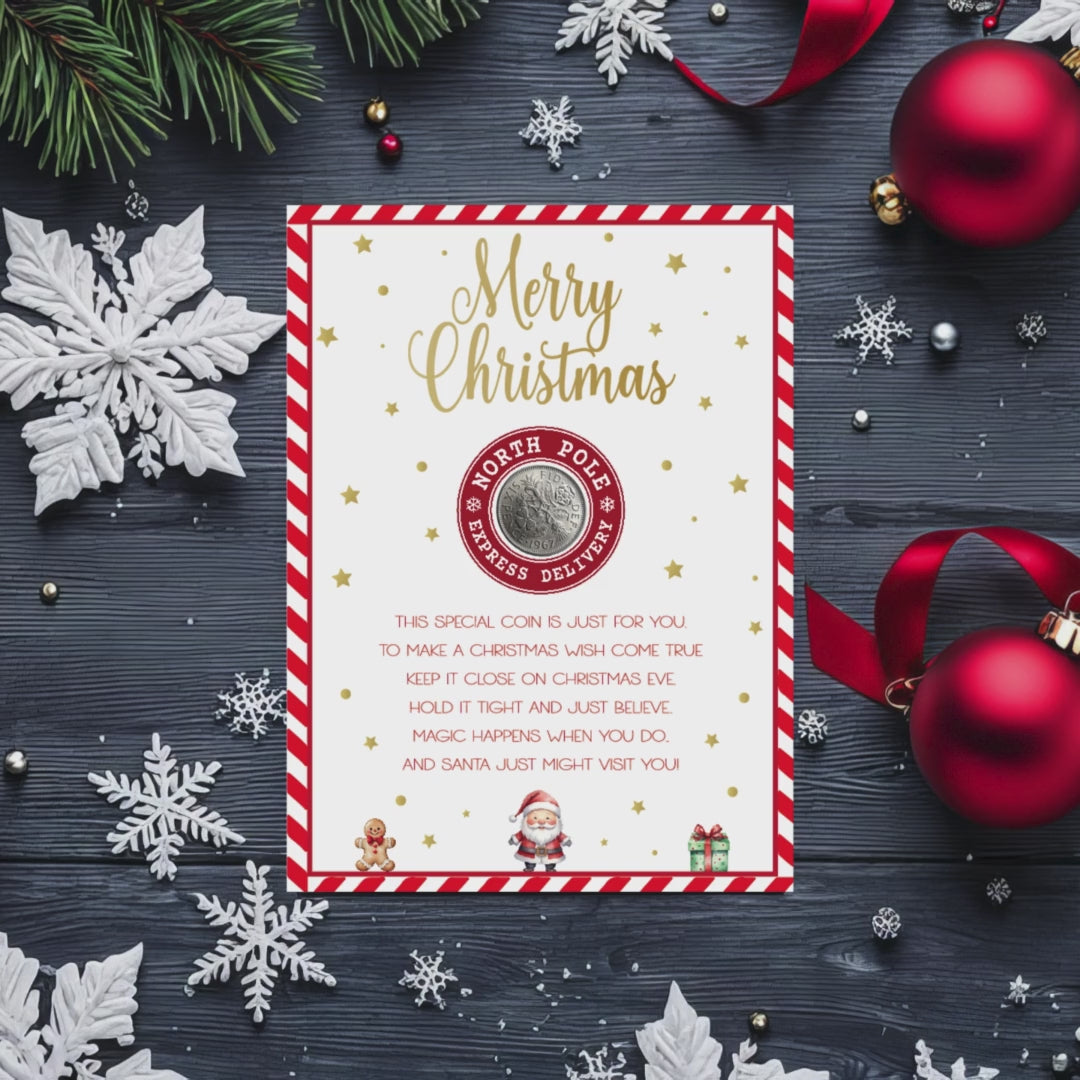 Coin from Santa Card - Christmas Keepsake with Real Sixpence