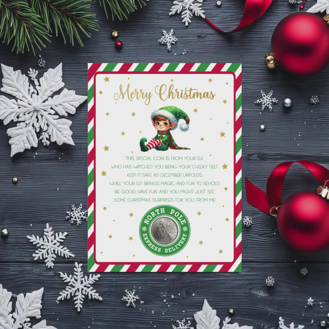 Coin from the Elf Card - Christmas Keepsake with Real Sixpence