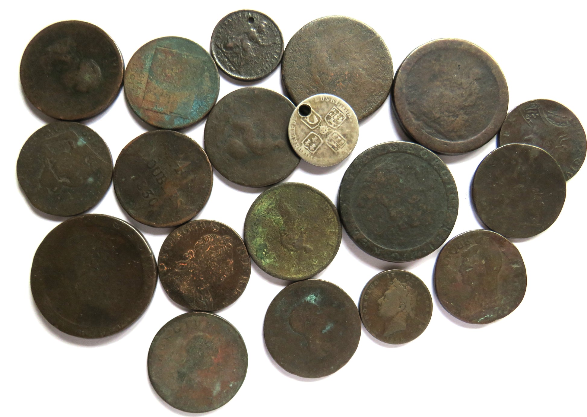 Worn coins but interesting historical items, mainly UK Georgian with a couple of imposters.