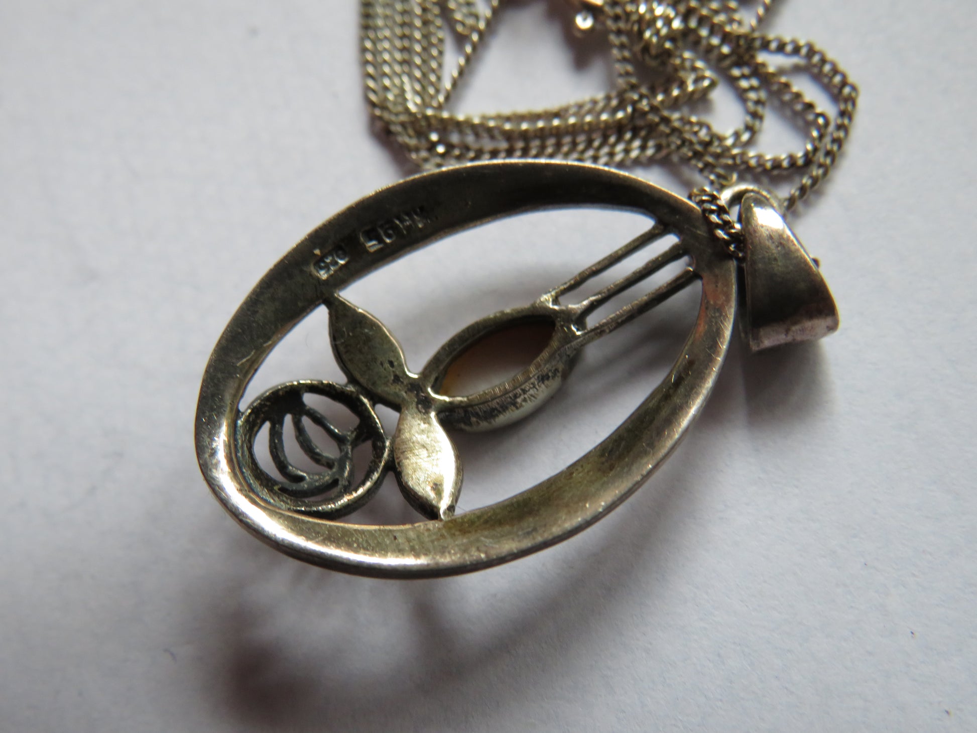 Ladies Sterling Silver Necklace & Pendant By Kit Heath In Style of Charles Rennie Mackintosh