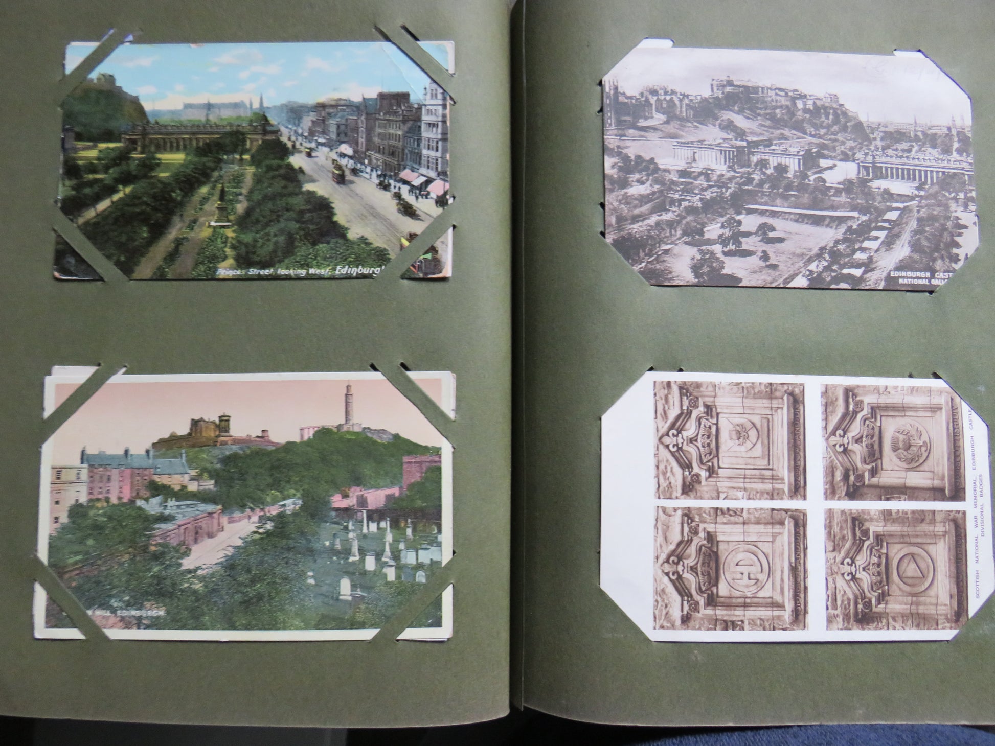 Aprox 150 postcards, some edge , corner wear, mainly in good condition. Housed in vintage album, postcards of Edinburgh mainly but some surrounding areas.