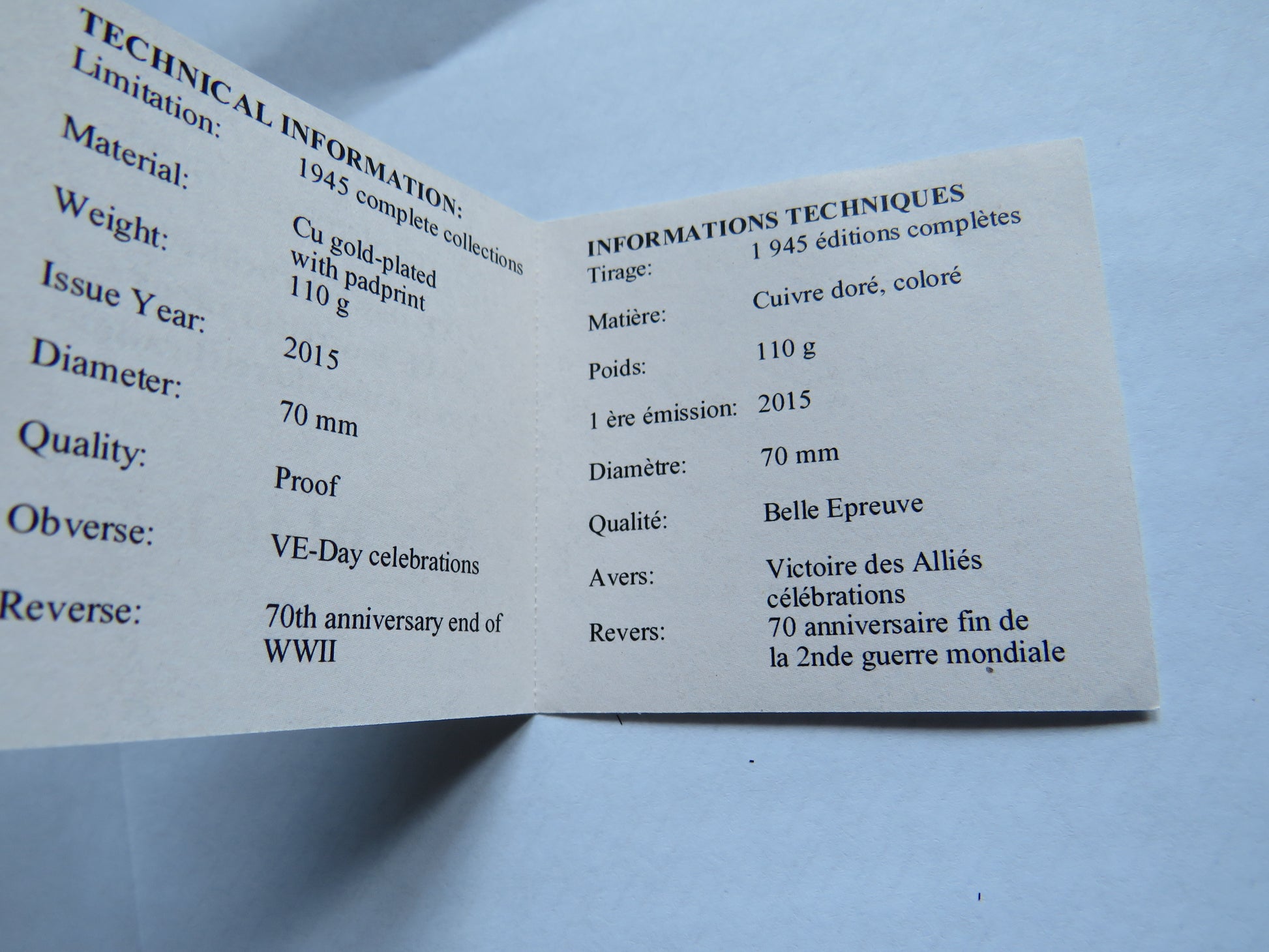 Large Commemorative Coin / Medal Victory In Europe Day 70th Anniversary of End of WWII