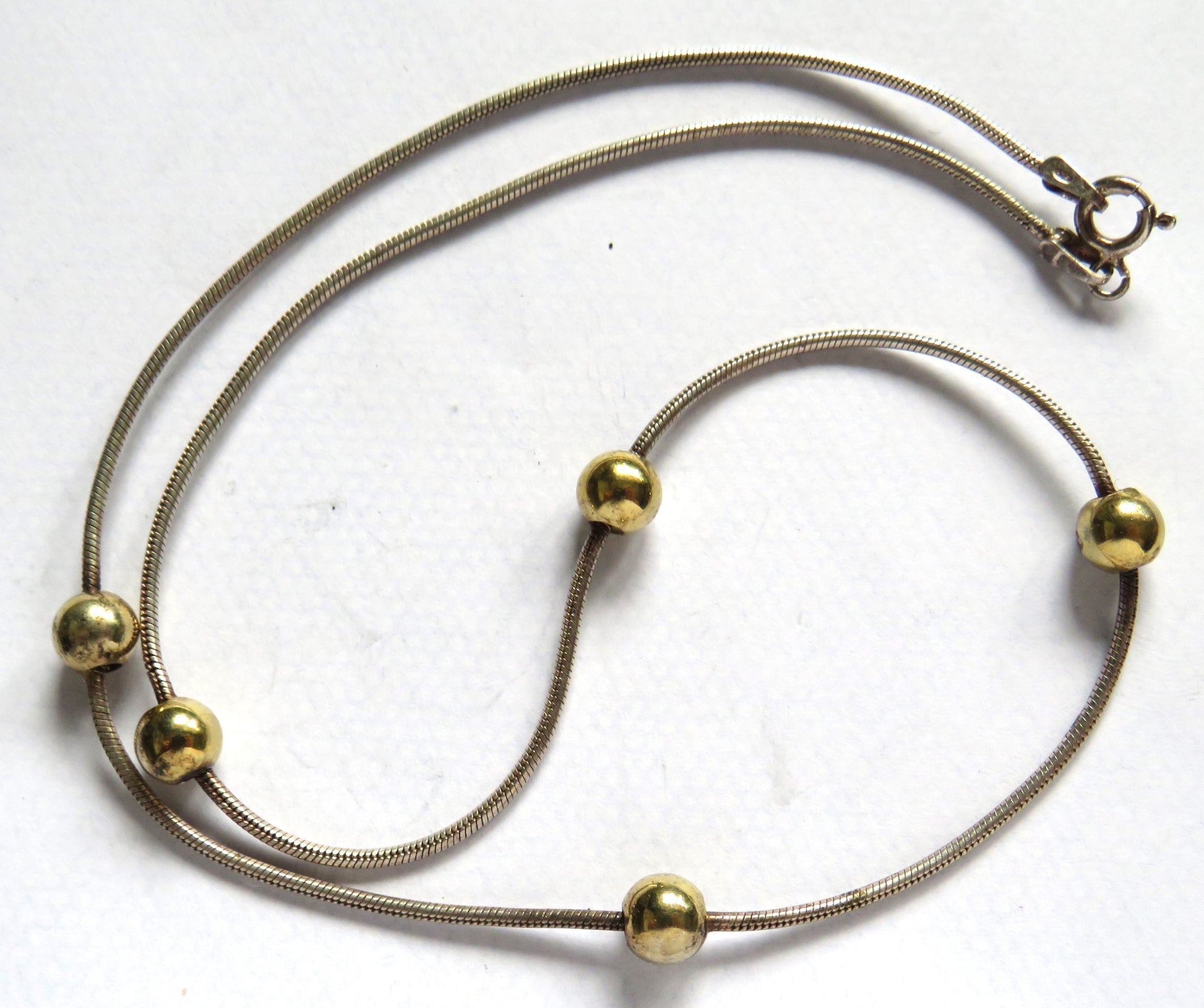 Stylish Ladies Sterling Silver & Gold Bead Necklace