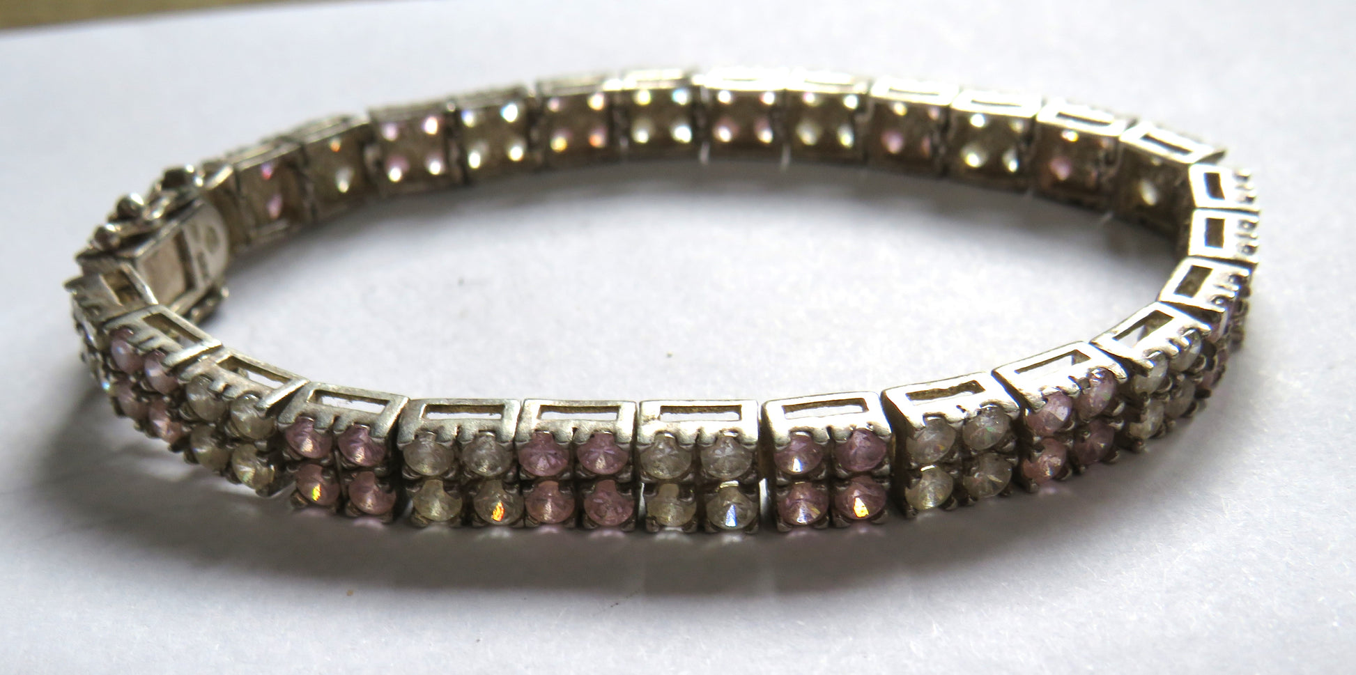 For Sale - Stylish Ladies Sterling Silver & Pink & Clear CZ Stone Bracelet
