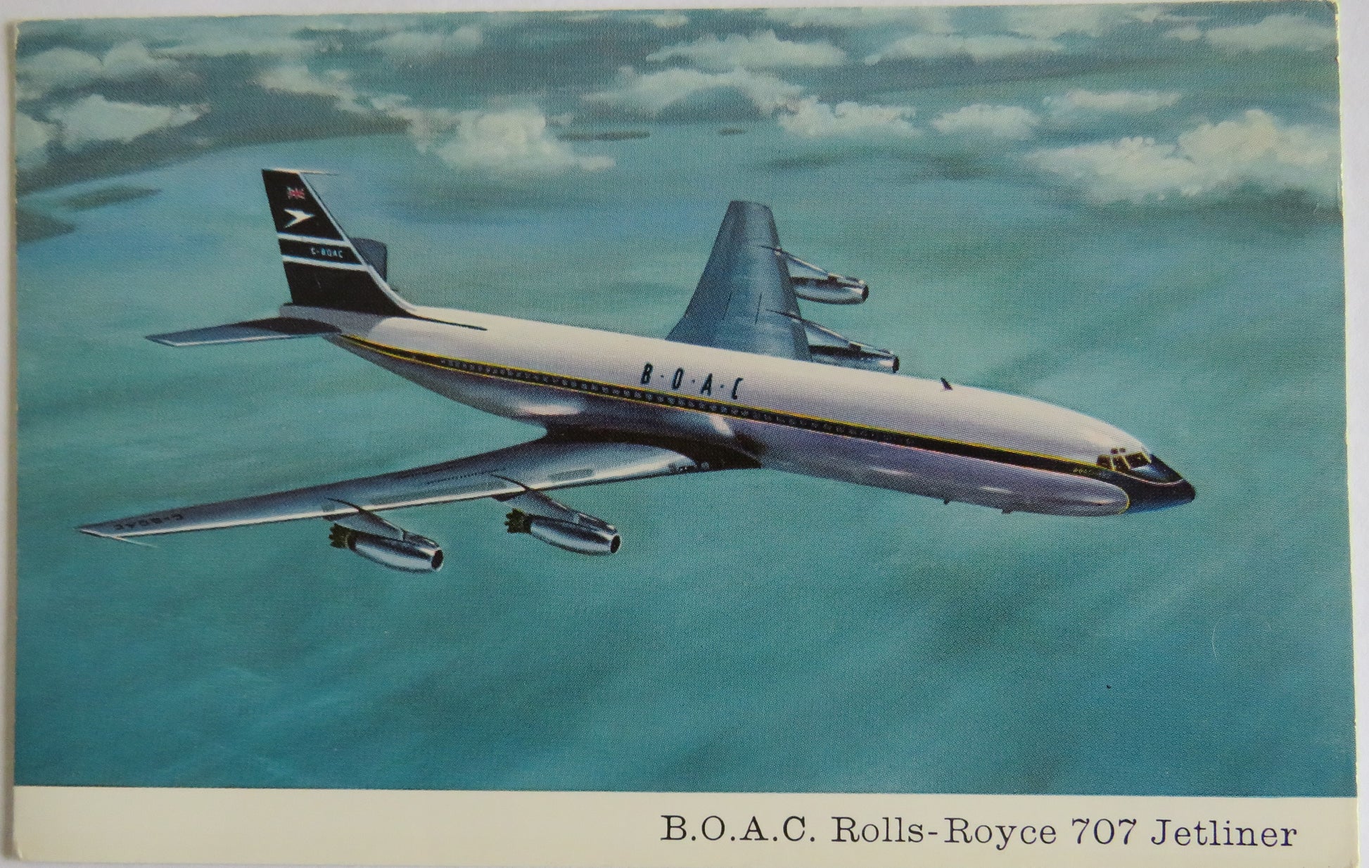 Vintage Aircraft Postcard of B.O.A.C. Rolls-Royce 707 Jetliner
