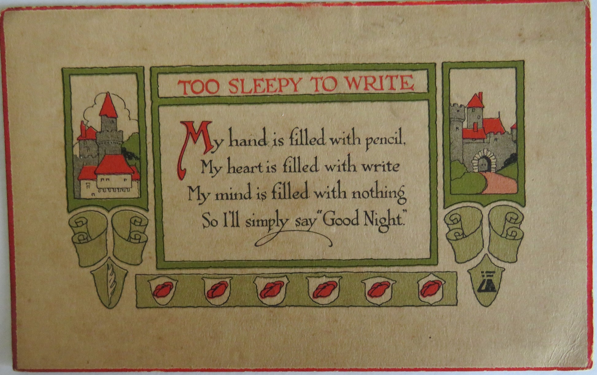 For Sale - Vintage Comical Postcard "Too Sleepy To Write"