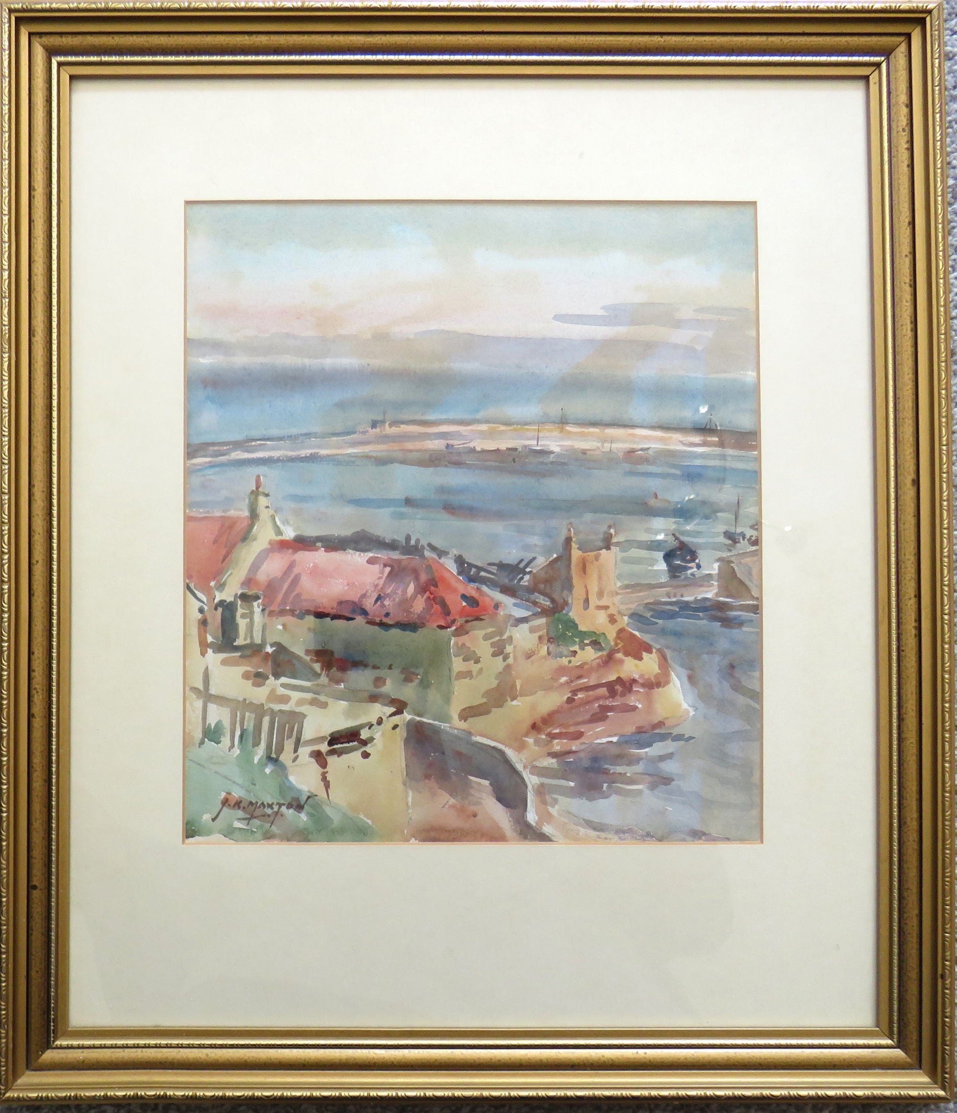 Vintage Framed Watercolour By John Kidd Maxwell (1878-1942) Fishing Village Scene