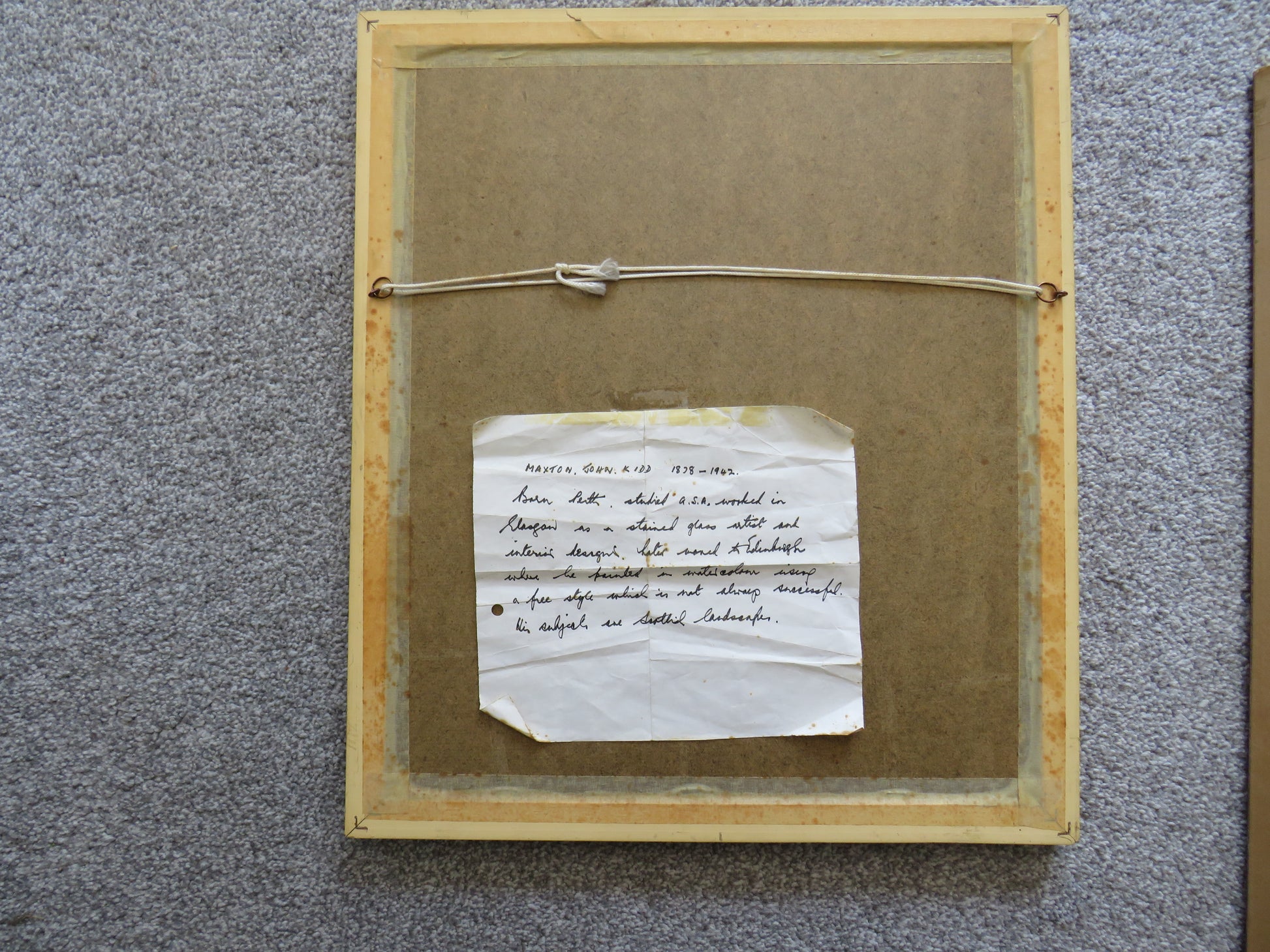 Painting almost looks stained from the sky downwards but I believe this intentional for clouds / rain. A few small chips to frame edge but generally good condition. Glass front.