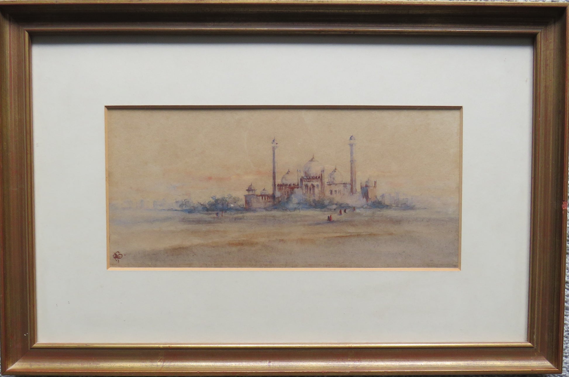 Vintage Framed Watercolour Painting of The Jumma Musjid, Delhi