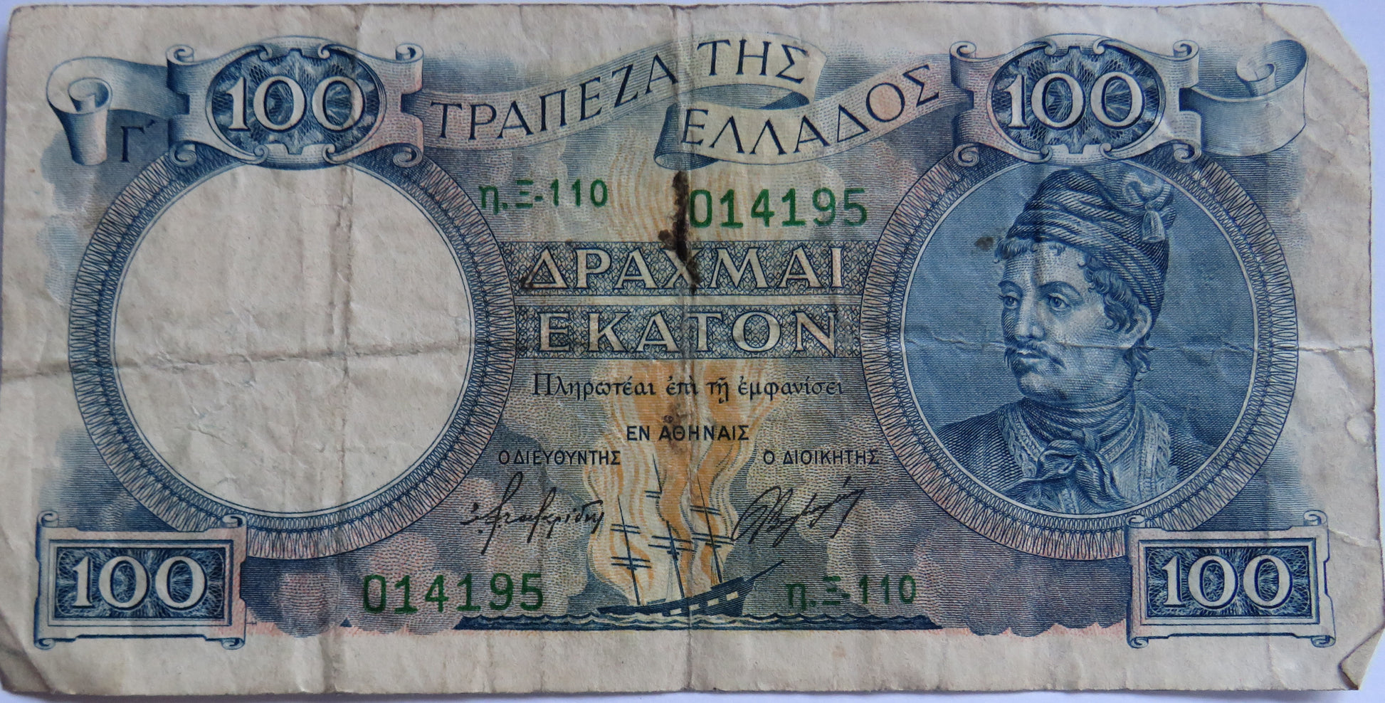 Vintage Greece 100 Drachmai Banknote