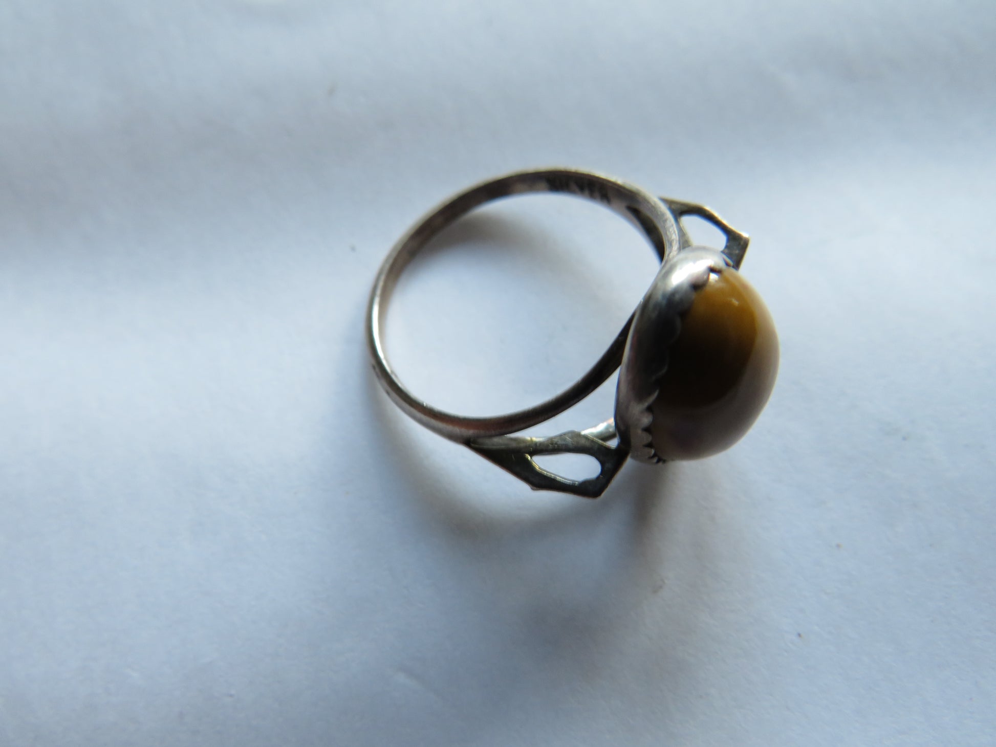 For Sale - Vintage Ladies Silver & Amber Coloured Stone Ring - UK Size O & 1/2
