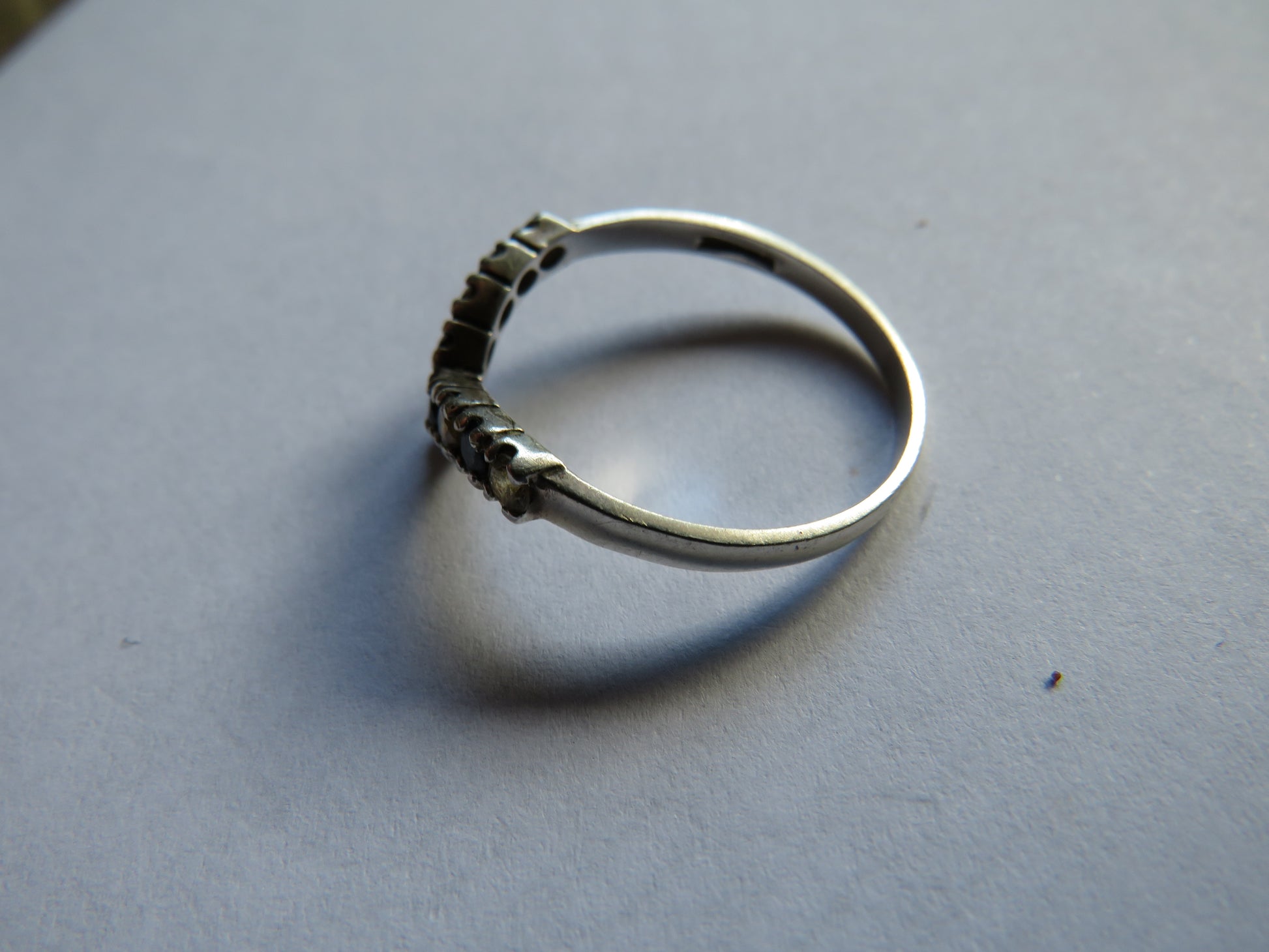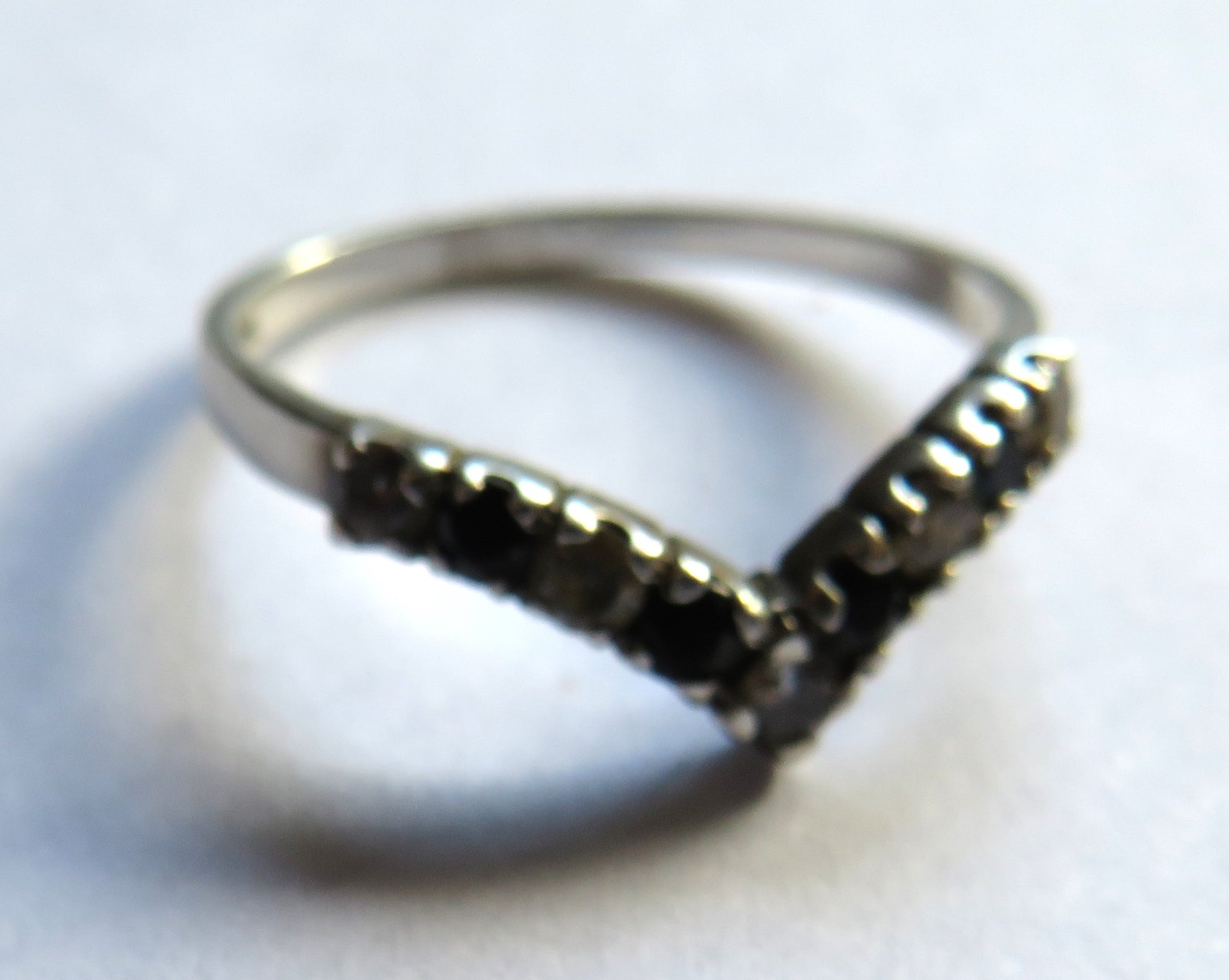 - Vintage Ladies Silver, Black & Clear Stone Ring - UK Size - U