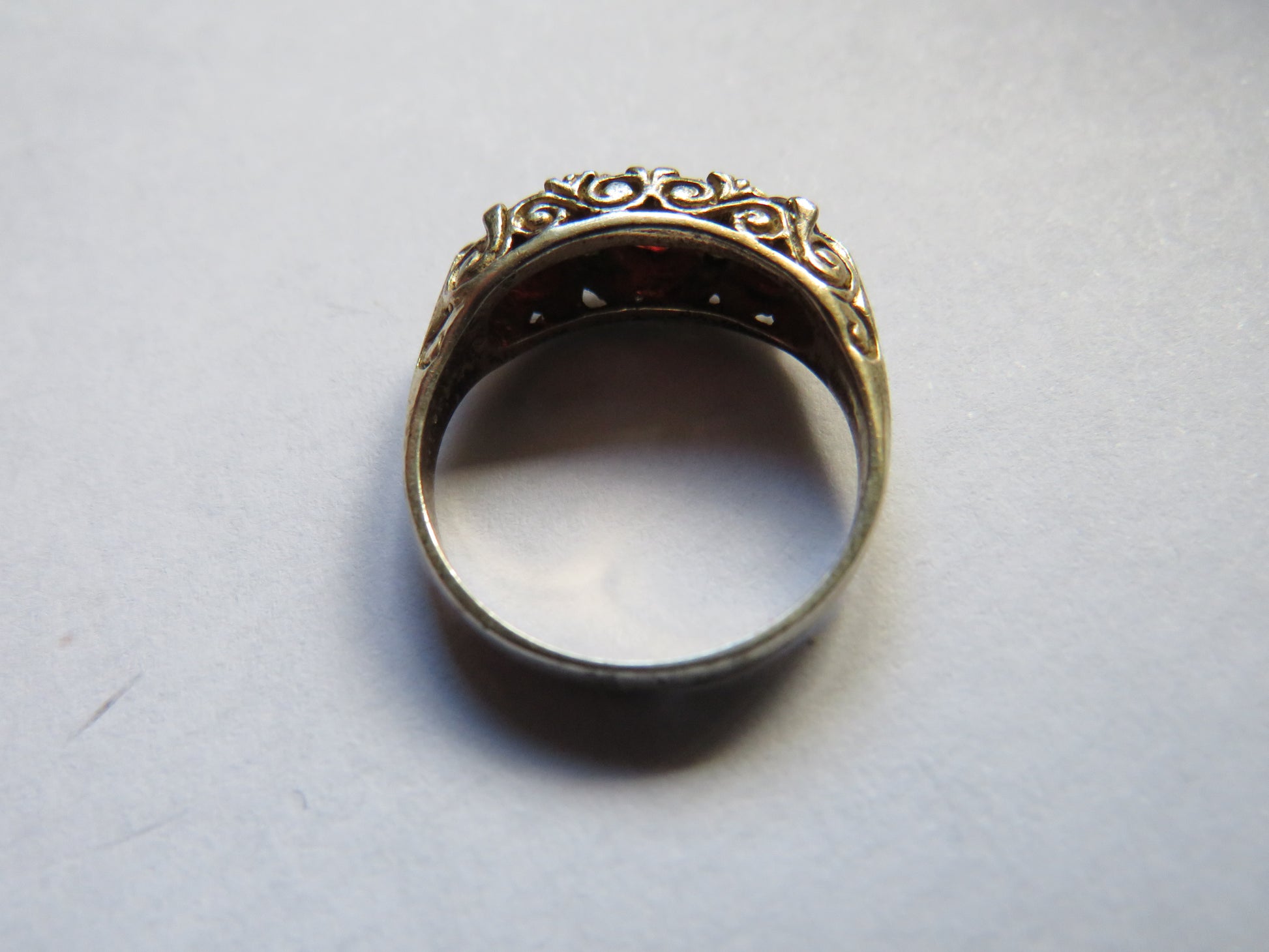 - Vintage Ladies Silver & Red Stone Ring - UK Size - O