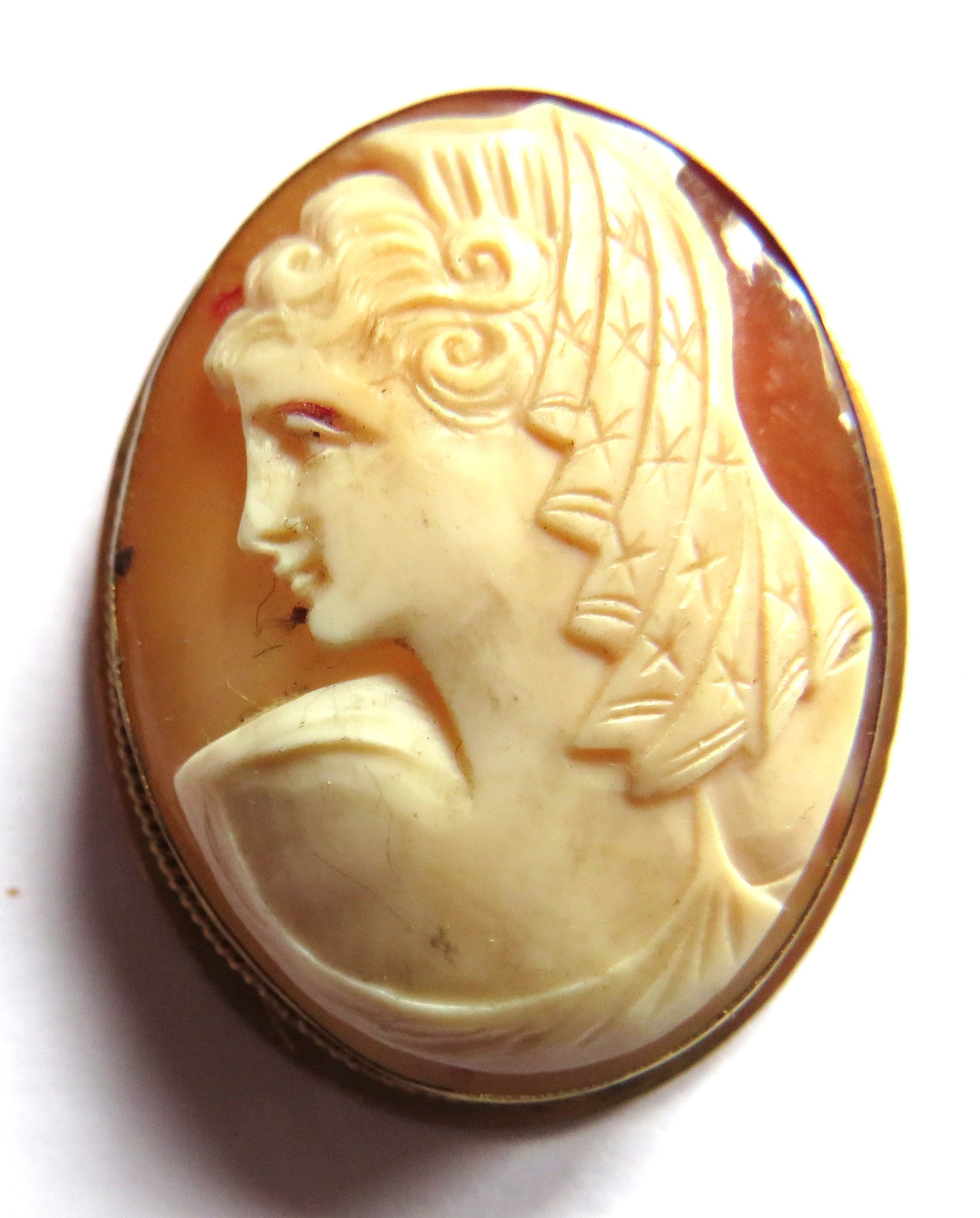Vintage Ladies Yellow Metal Carved Cameo Brooch