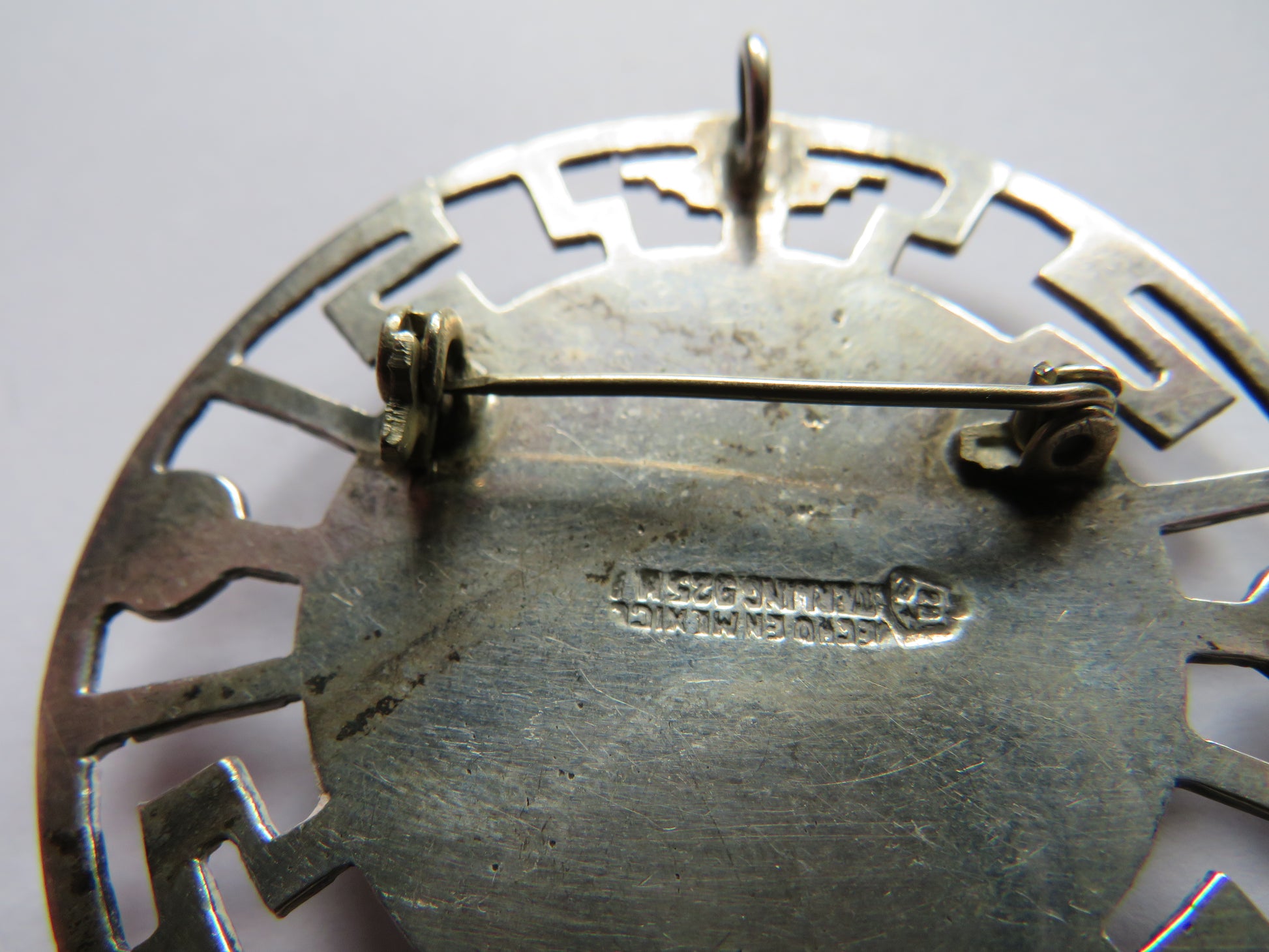 Vintage Mexican Sterling Silver Disc Brooch - Aztec - Good Size