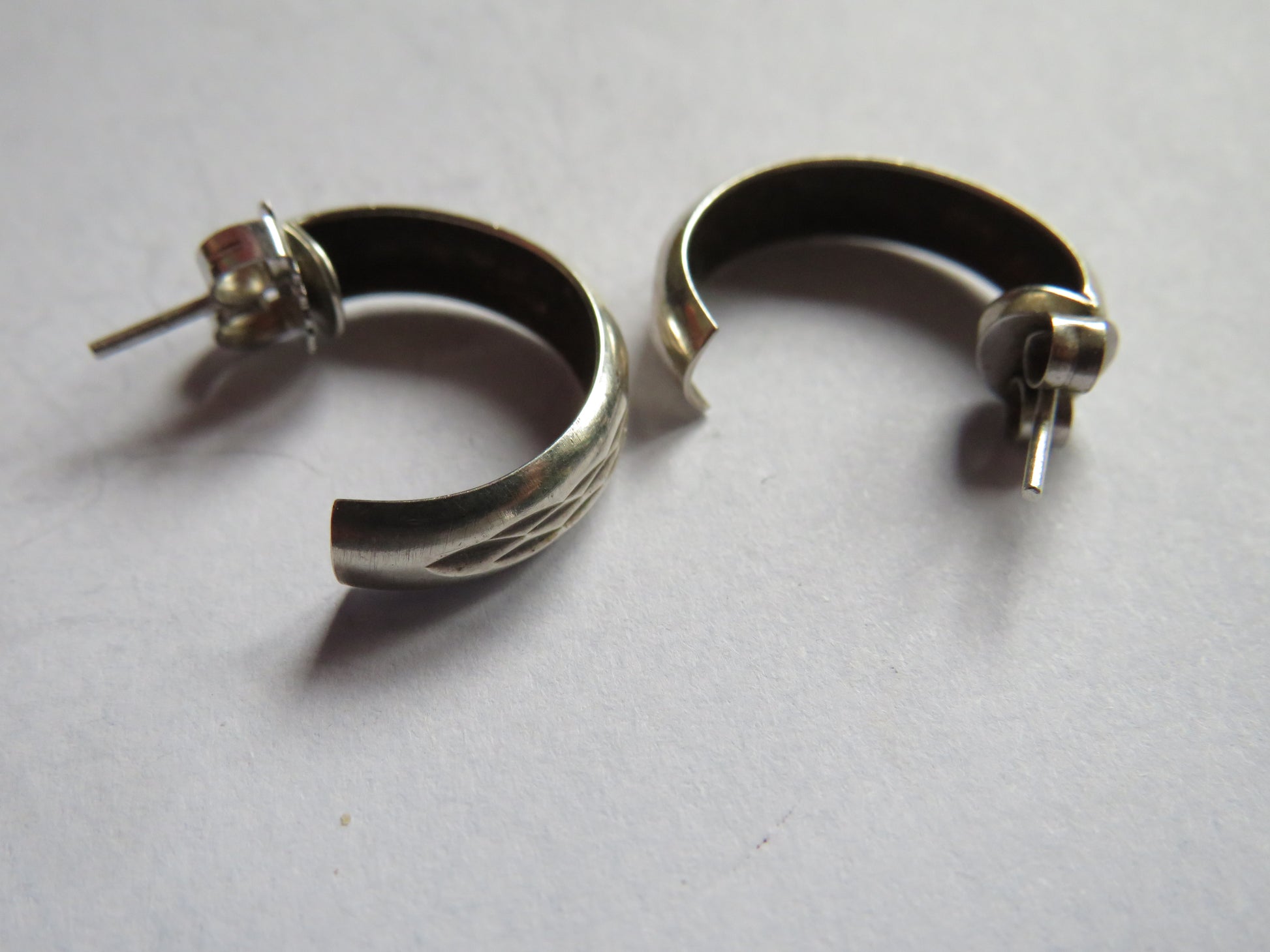 For Sale - Vintage Pair of Ladies Half Hoop White Metal Earrings