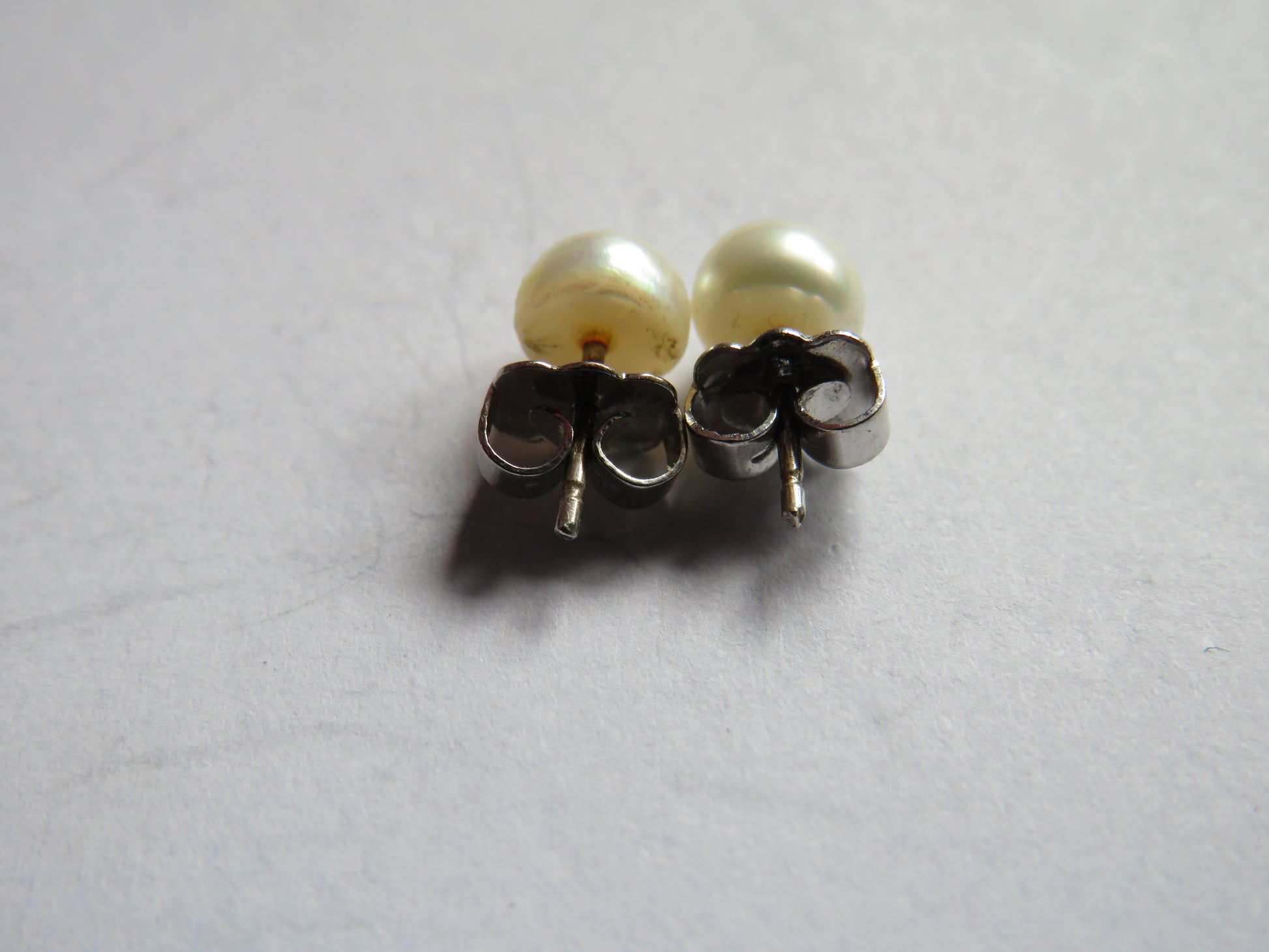 Vintage Pair of Ladies Silver & Cut Pearl Stud Earrings