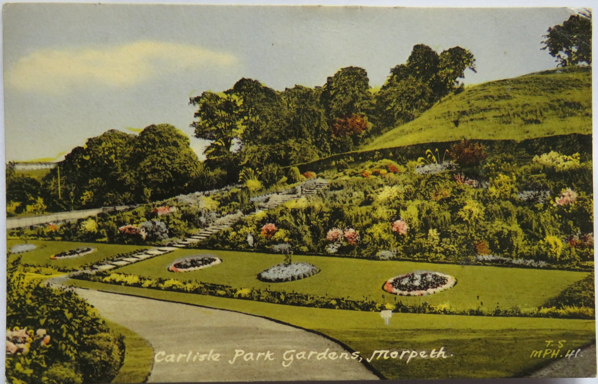 For Sale - Vintage Postcard of Carlisle Park Gardens, Morpeth 1956