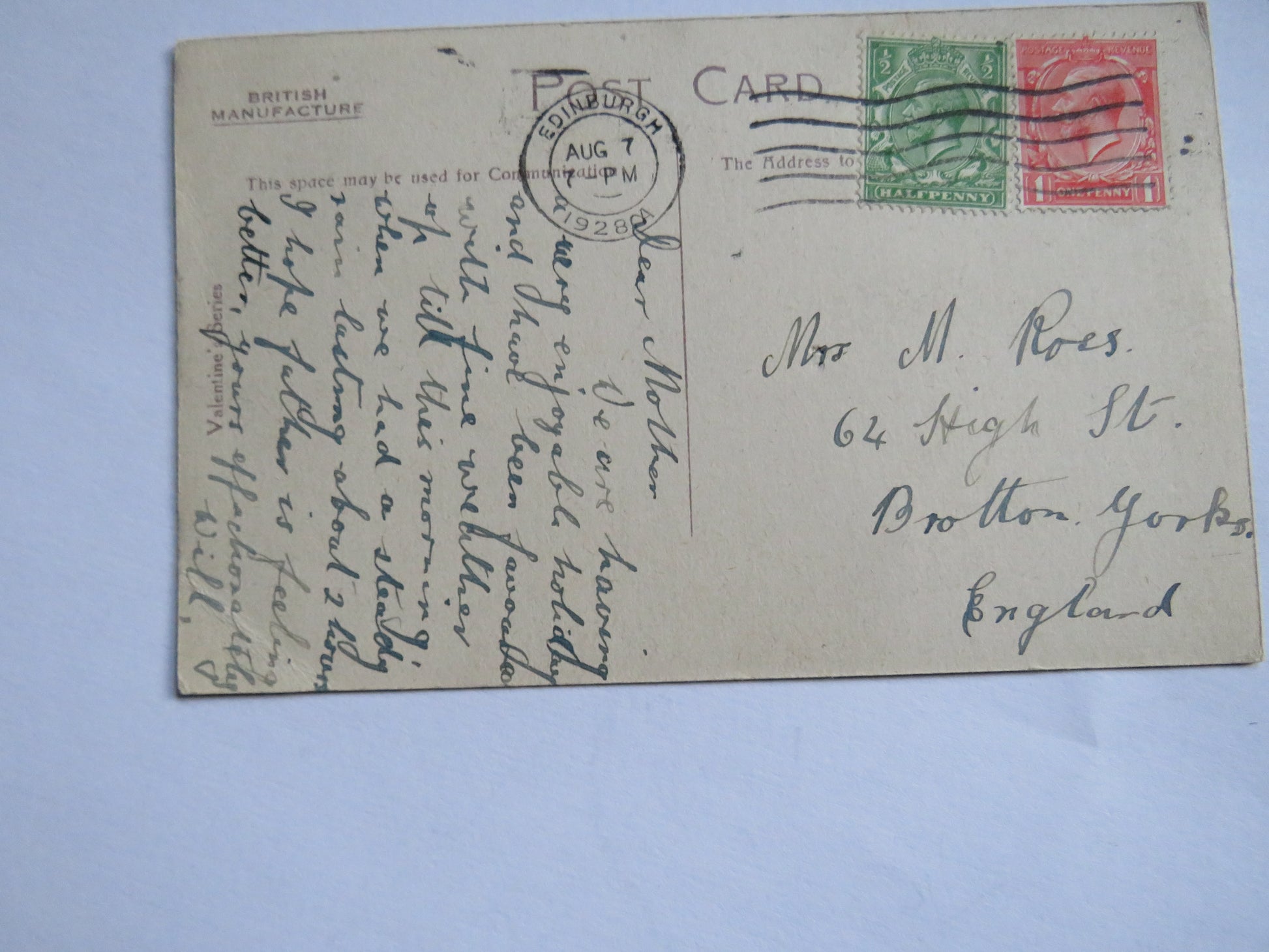 Vintage Postcard of Edinburgh From The Castle 1928 Douglas Tartan